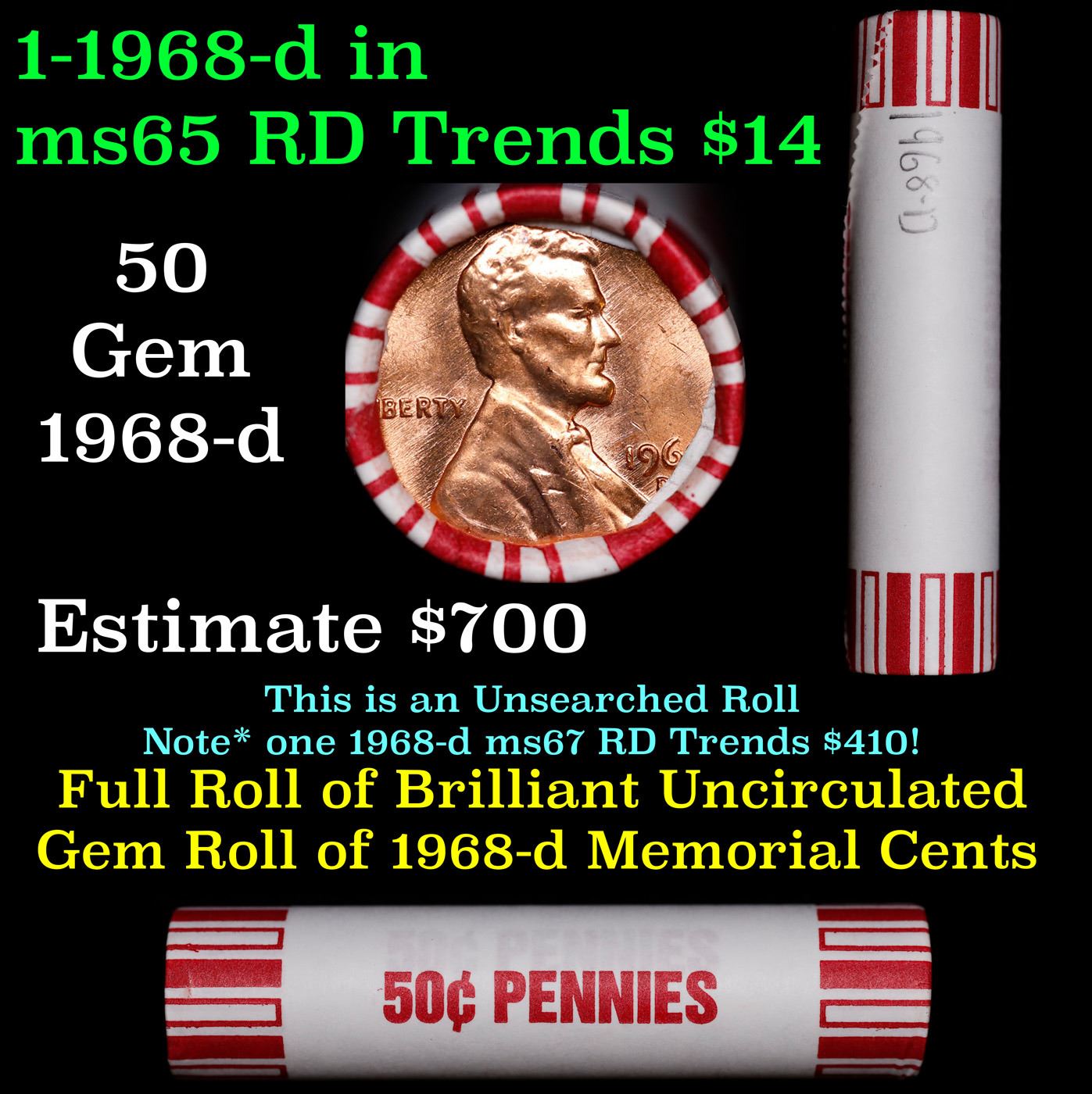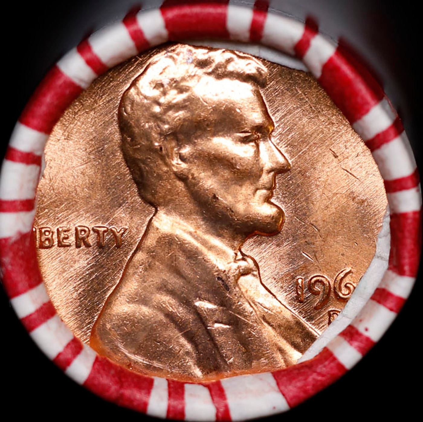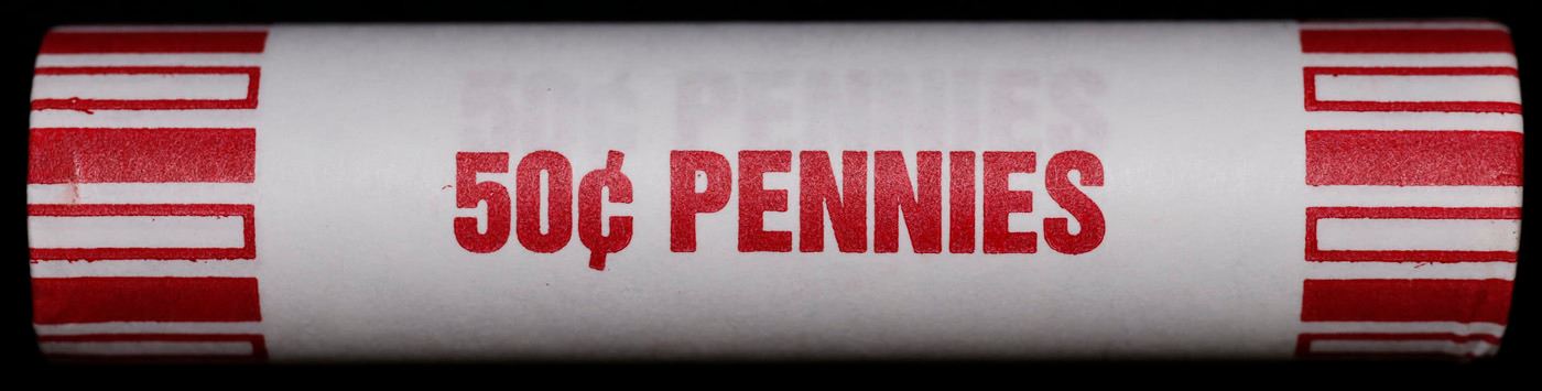Shotgun Lincoln 1c roll, 1968-d 50 pcs Bank Wrapper.. A terrific Shotgun roll of Lincoln cents. Most if not all coin should be cherry red.