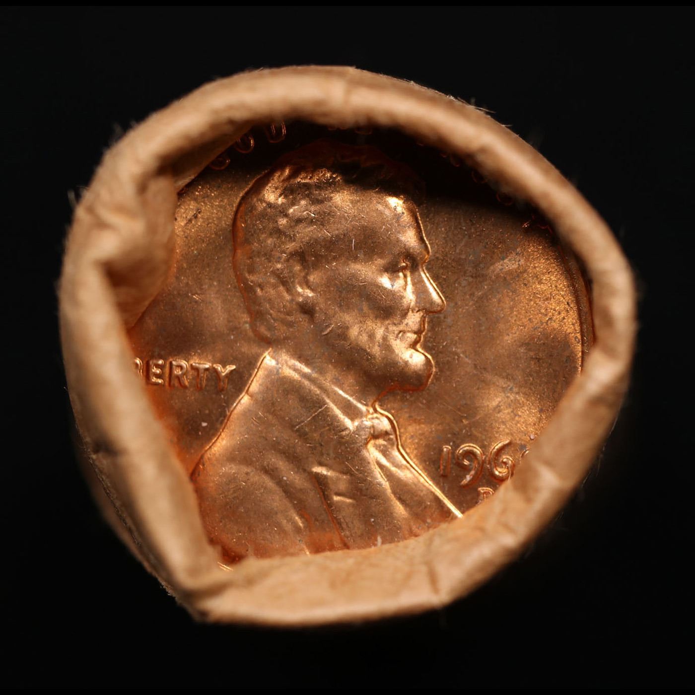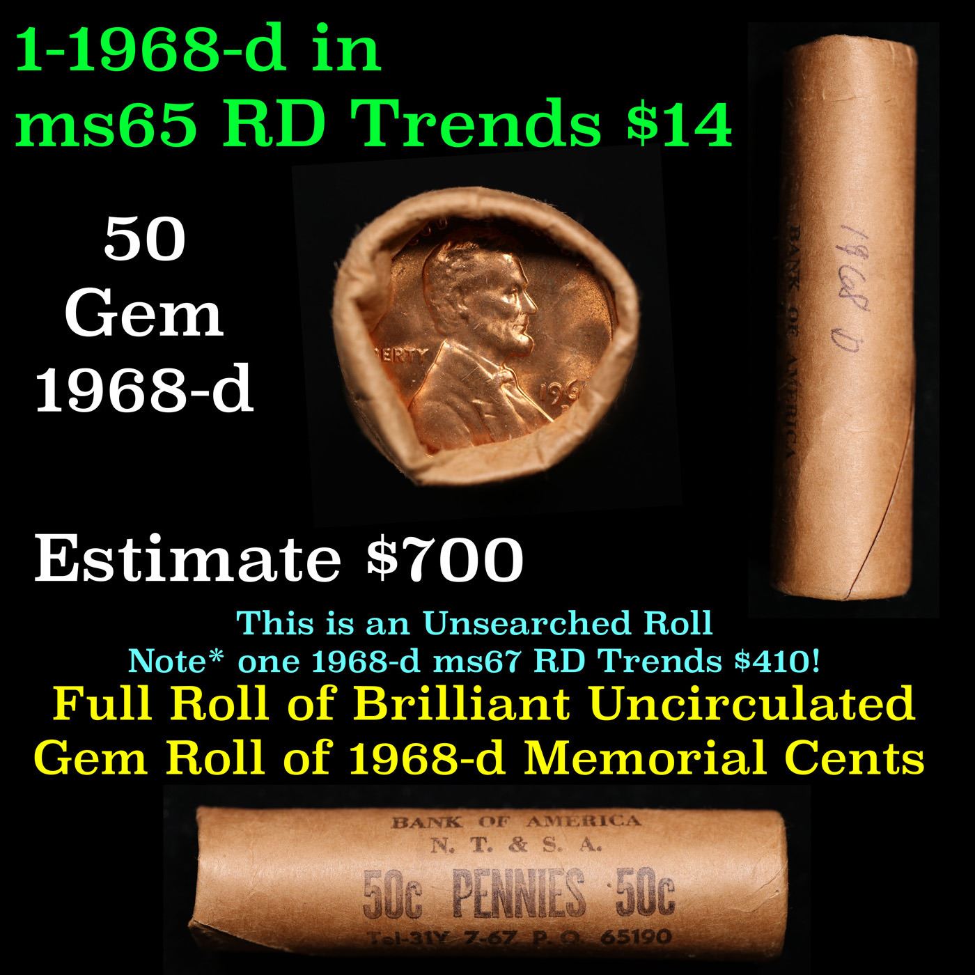 Shotgun Lincoln 1c roll, 1968-d 50 pcs Bank of America N.T & S.A. Wrapper.. A terrific Shotgun roll of Lincoln cents. All coins appear to be cherry red. Trends ms65 rd $14