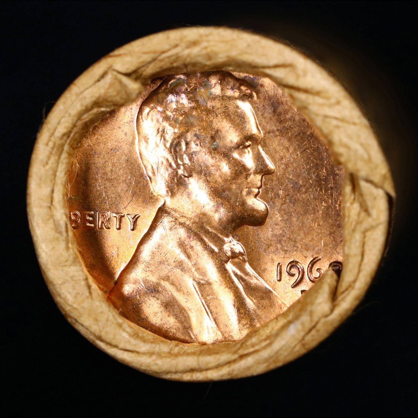 Shotgun Lincoln 1c roll, 1968-d 50 pcs Brandt Wrapper.. A terrific Shotgun roll of Lincoln cents. Most if not all coin should be cherry red.