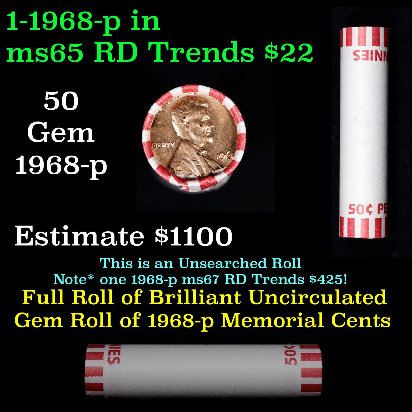 Shotgun Lincoln 1c roll, 1968-p 50 pcs Bank Wrapper.. A terrific Shotgun roll of Lincoln cents. Most if not all coin should be cherry red.
