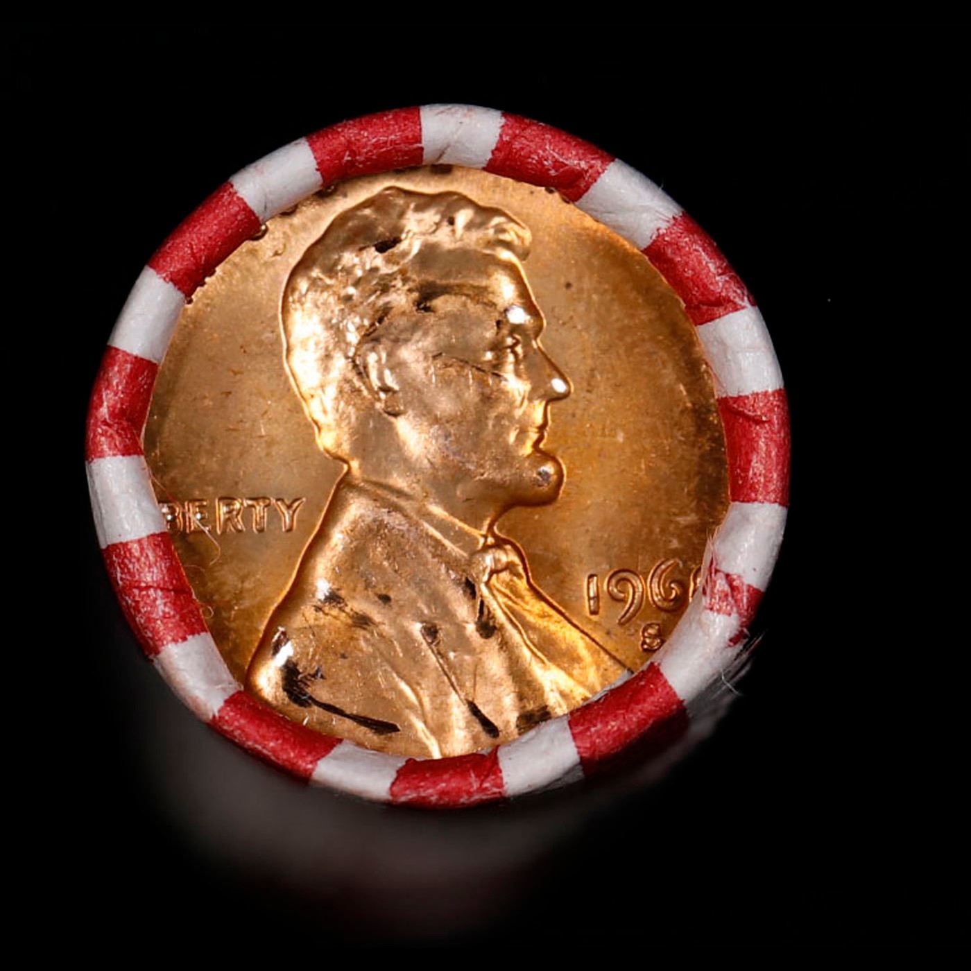 Shotgun Lincoln 1c roll, 1968-s 50 pcs Bank Wrapper.. A terrific Shotgun roll of Lincoln cents. Most if not all coin should be cherry red.