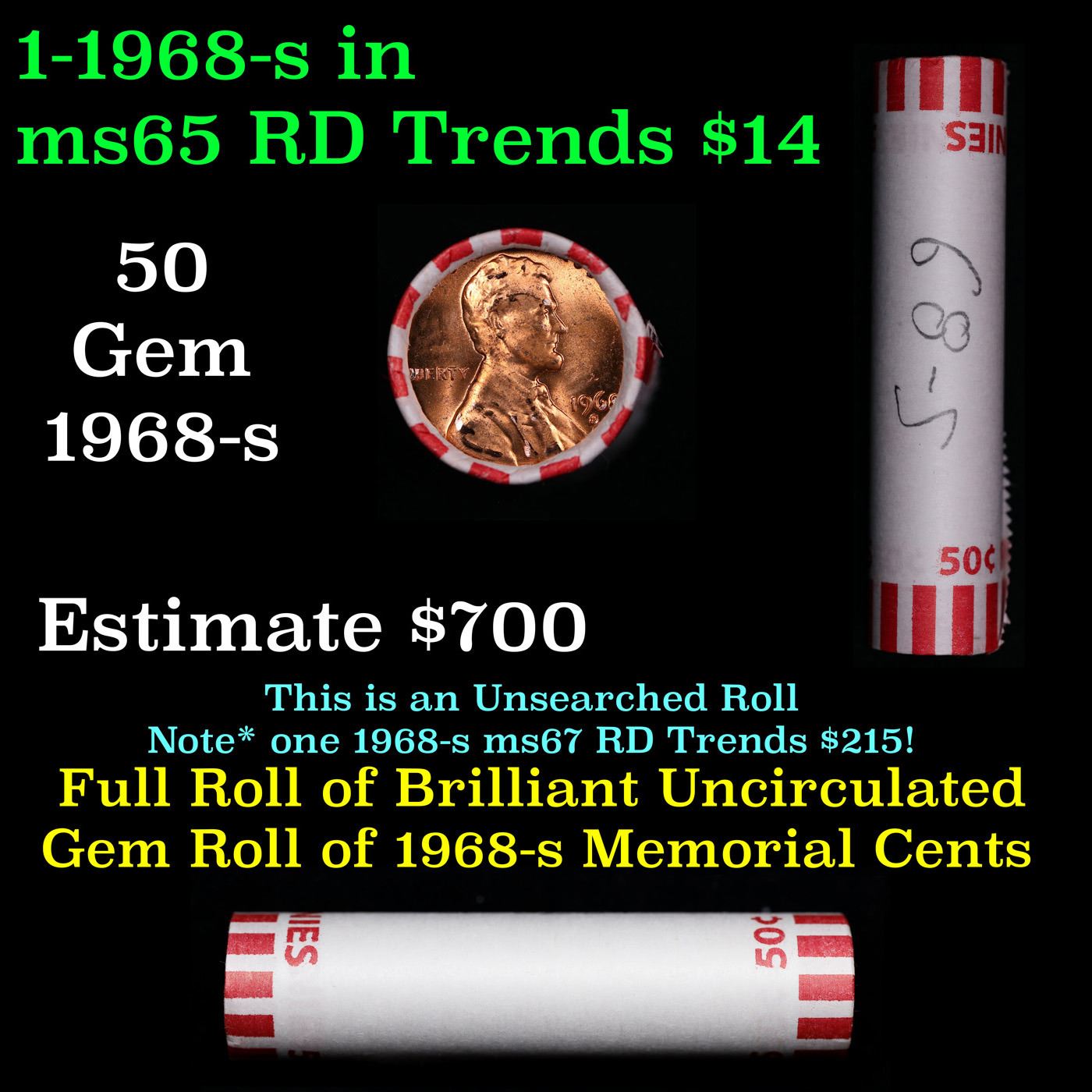 Shotgun Lincoln 1c roll, 1968-s 50 pcs Bank Wrapper.. A terrific Shotgun roll of Lincoln cents. Most if not all coin should be cherry red.