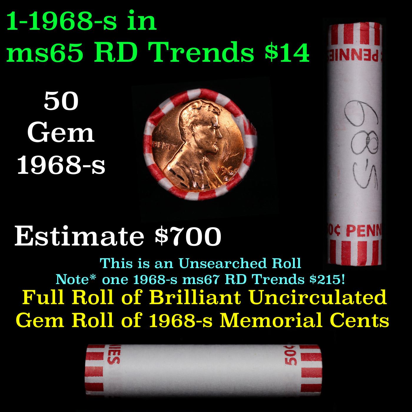 Shotgun Lincoln 1c roll, 1968-s 50 pcs Bank Wrapper.. A terrific Shotgun roll of Lincoln cents. Most if not all coin should be cherry red.