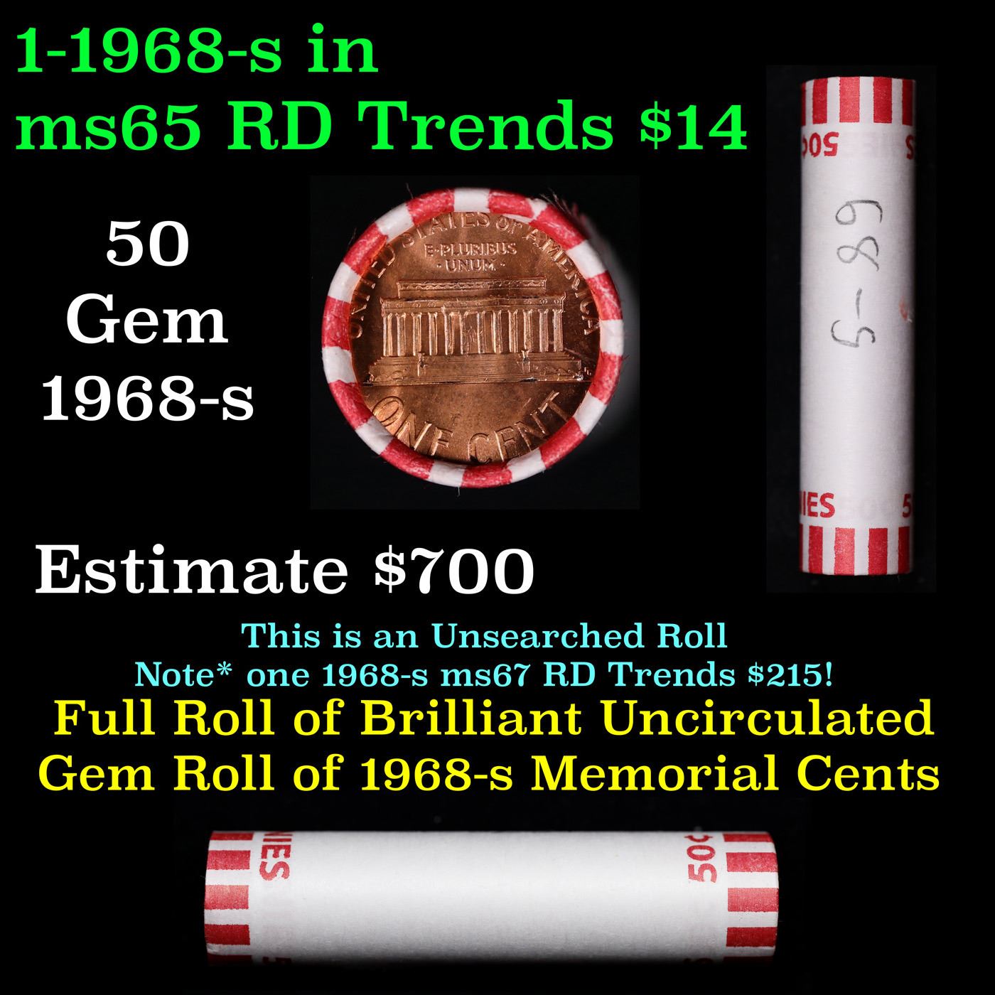 Shotgun Lincoln 1c roll, 1968-s 50 pcs Bank Wrapper.. A terrific Shotgun roll of Lincoln cents. Most if not all coin should be cherry red.
