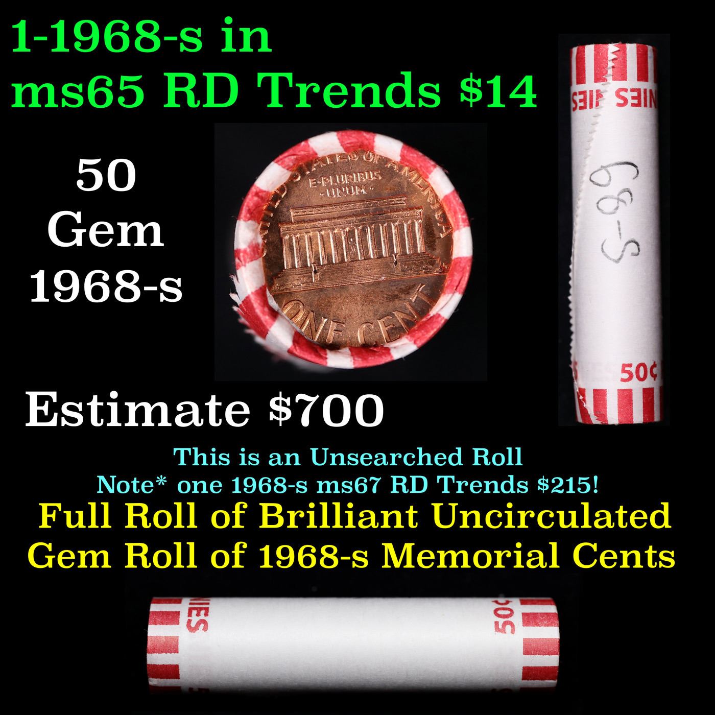 Shotgun Lincoln 1c roll, 1968-s 50 pcs Bank Wrapper.. A terrific Shotgun roll of Lincoln cents. Most if not all coin should be cherry red.