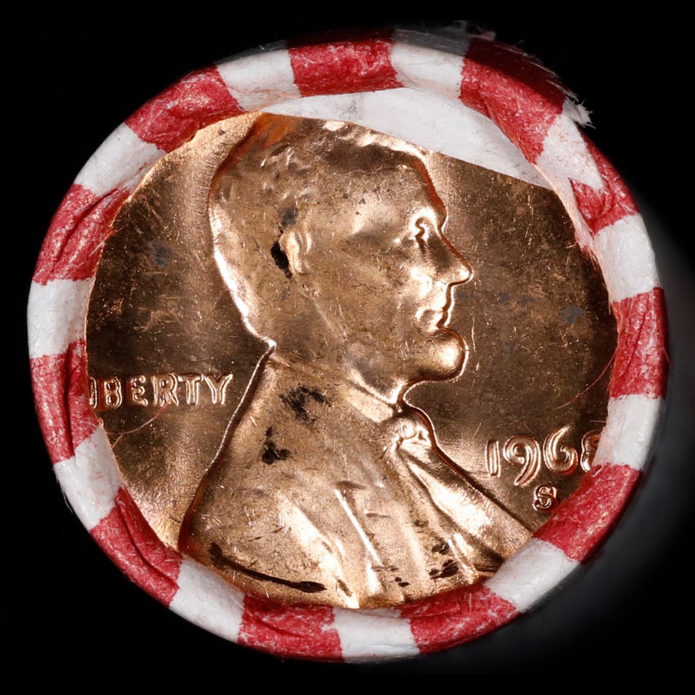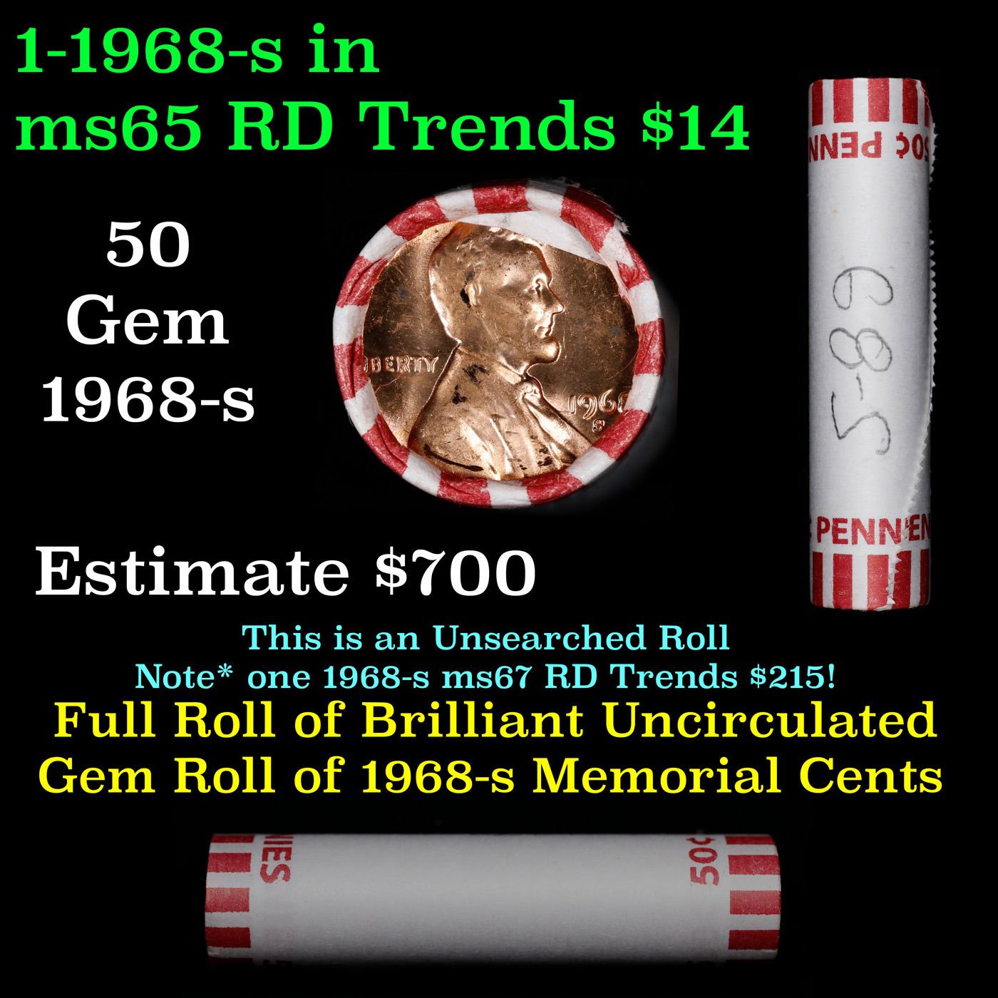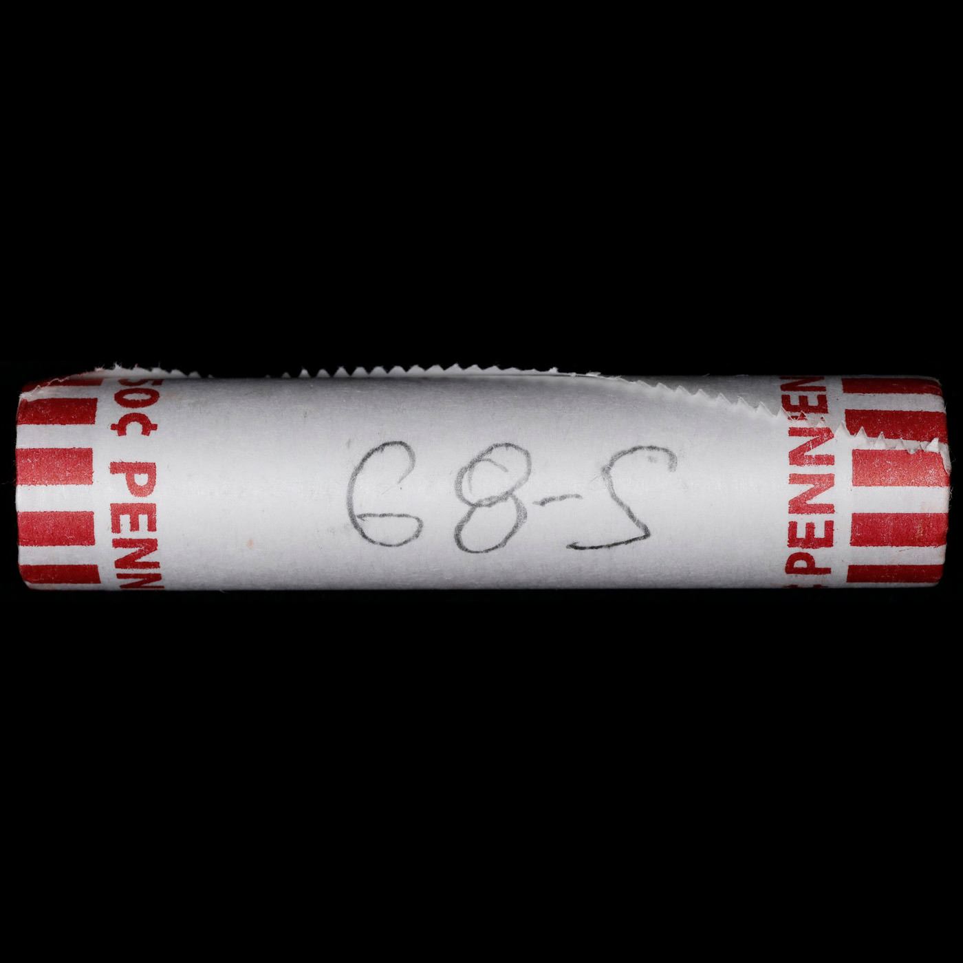 Shotgun Lincoln 1c roll, 1968-s 50 pcs Bank Wrapper.. A terrific Shotgun roll of Lincoln cents. Most if not all coin should be cherry red.