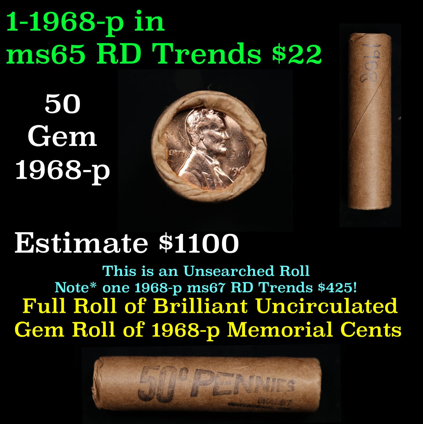 Shotgun Lincoln 1c roll, 1968-s 50 pcs Bank Wrapper.. A terrific Shotgun roll of Lincoln cents. Most if not all coin should be cherry red.