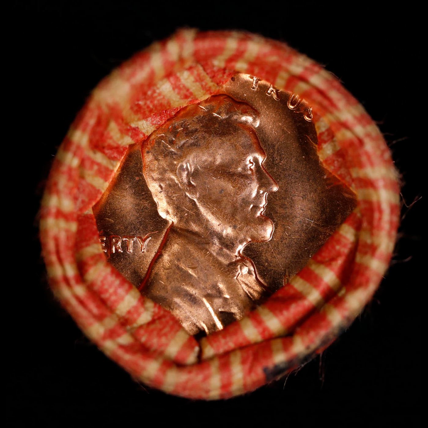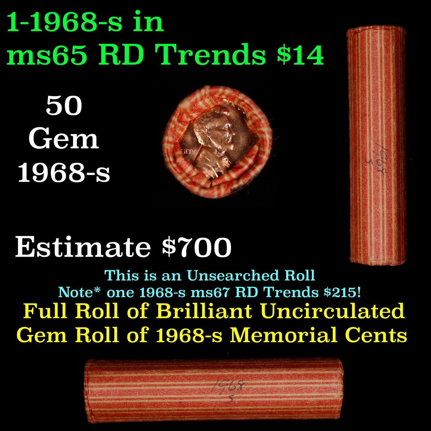 Shotgun Lincoln 1c roll, 1968-s 50 pcs Bank Wrapper.. A terrific Shotgun roll of Lincoln cents. Most if not all coin should be cherry red.