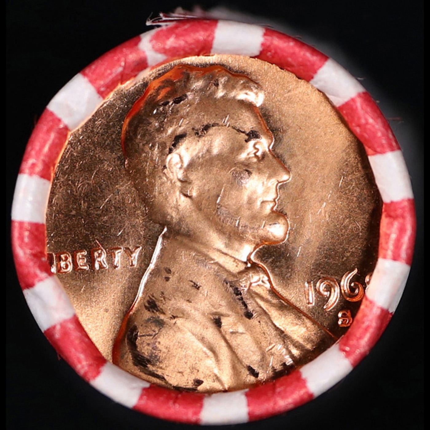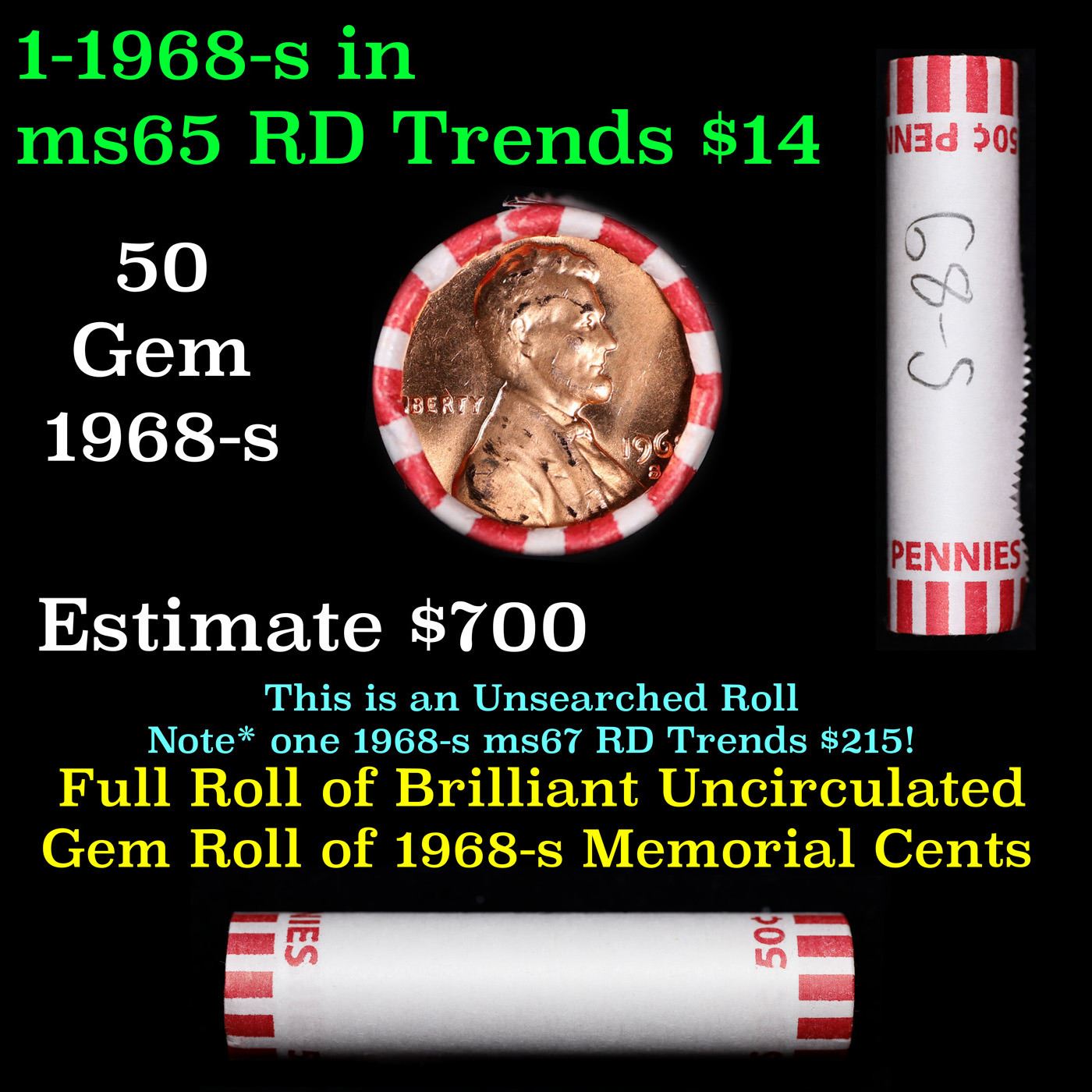Shotgun Lincoln 1c roll, 1968-s 50 pcs Bank Wrapper.. A terrific Shotgun roll of Lincoln cents. Most if not all coin should be cherry red.