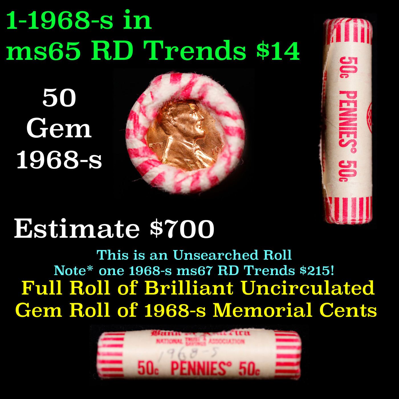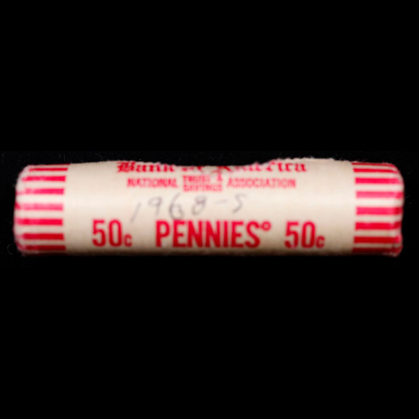 Shotgun Lincoln 1c roll, 1968-s 50 pcs Bank of America Wrapper.. A terrific Shotgun roll of Lincoln cents. Most if not all coin should be cherry red.