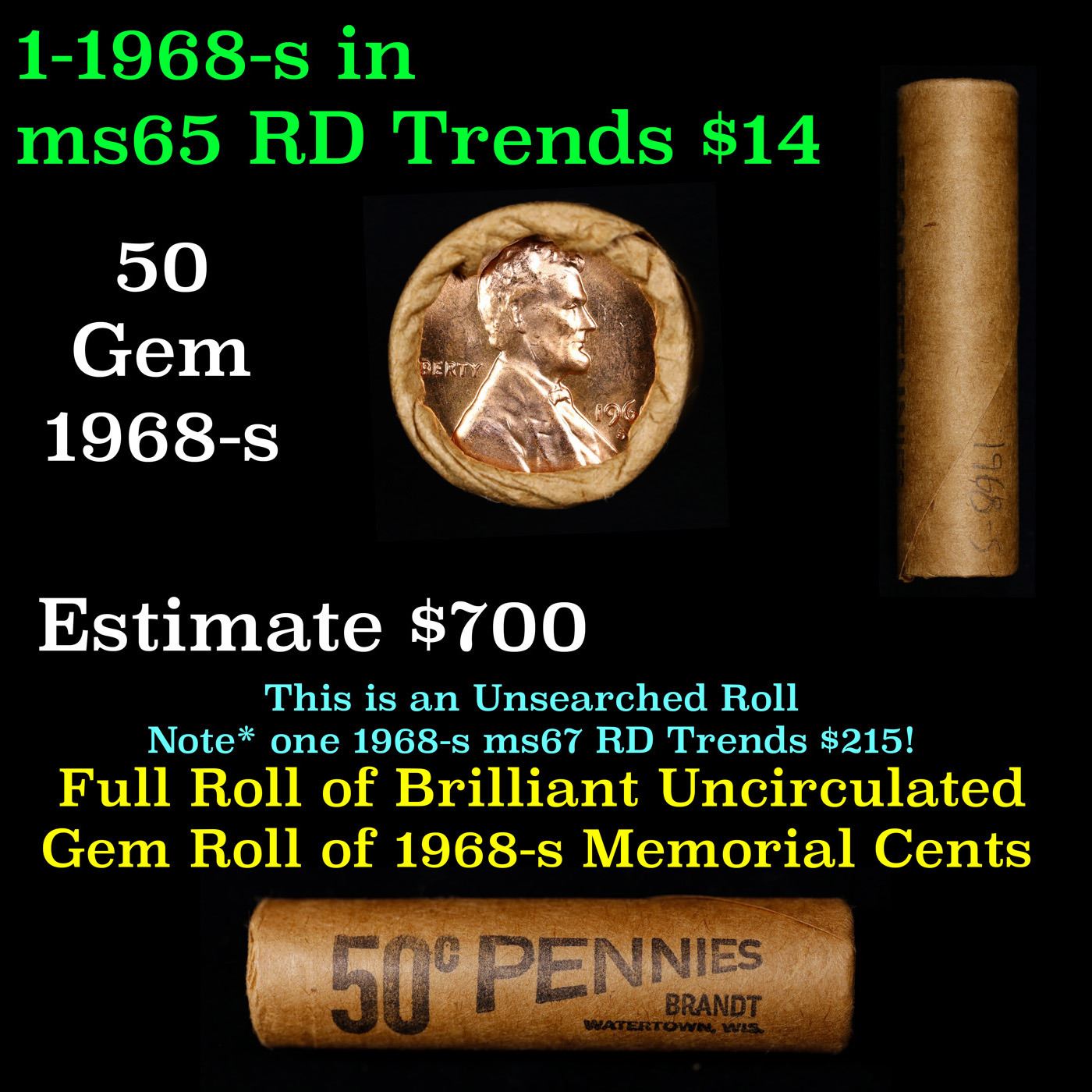 Shotgun Lincoln 1c roll, 1968-s 50 pcs Brandt Wrapper.. A terrific Shotgun roll of Lincoln cents. Most if not all coin should be cherry red.