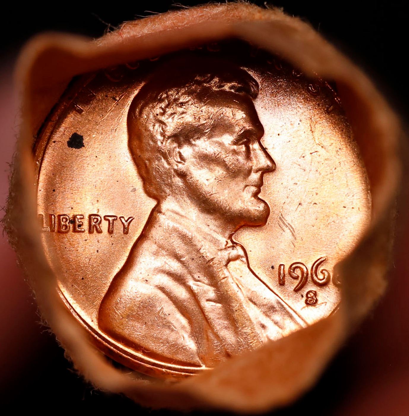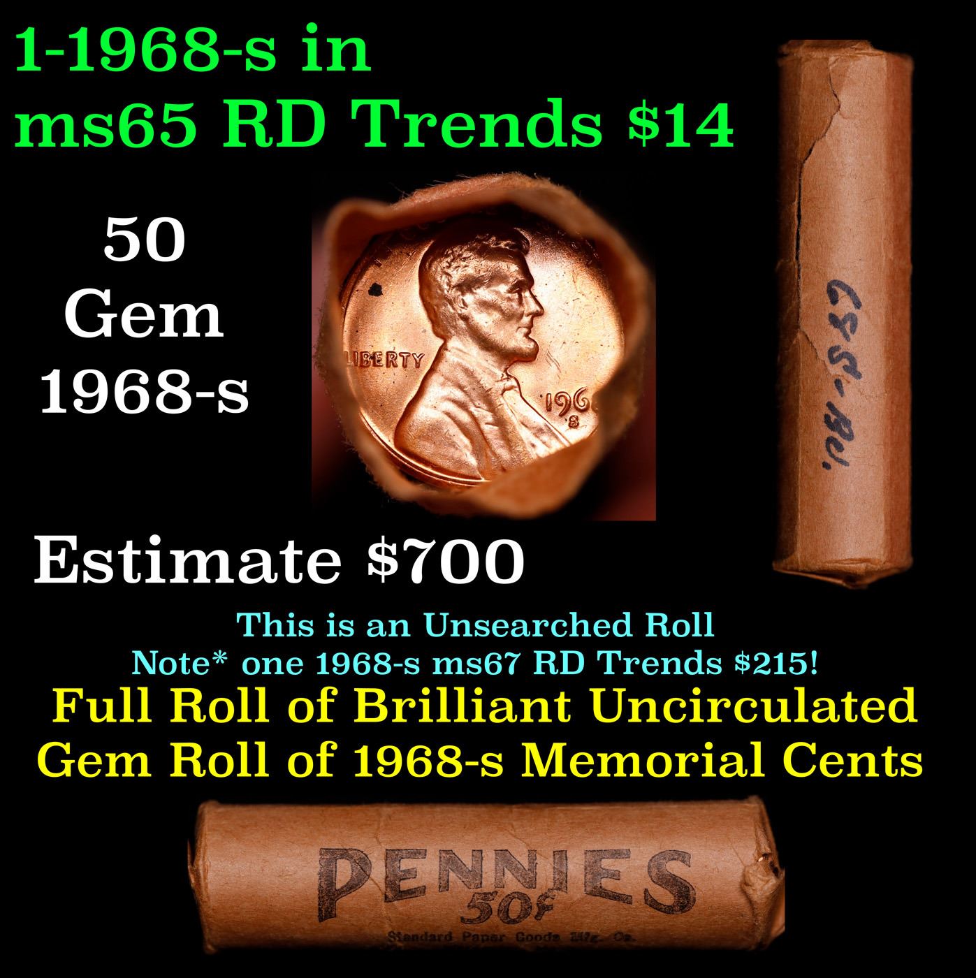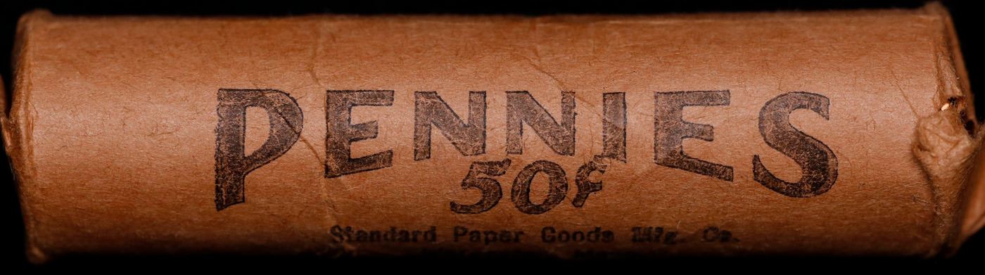 Shotgun Lincoln 1c roll, 1968-s 50 pcs Standard Paper Goods Wrapper.. A terrific Shotgun roll of Lincoln cents. Most if not all coin should be cherry red.