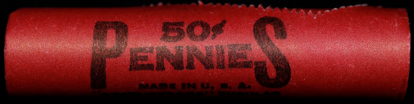 Shotgun Lincoln 1c roll, 1968-s 50 pcs Steel-Strong 50c Wrapper.. A terrific Shotgun roll of Lincoln cents. Most if not all coin should be cherry red.