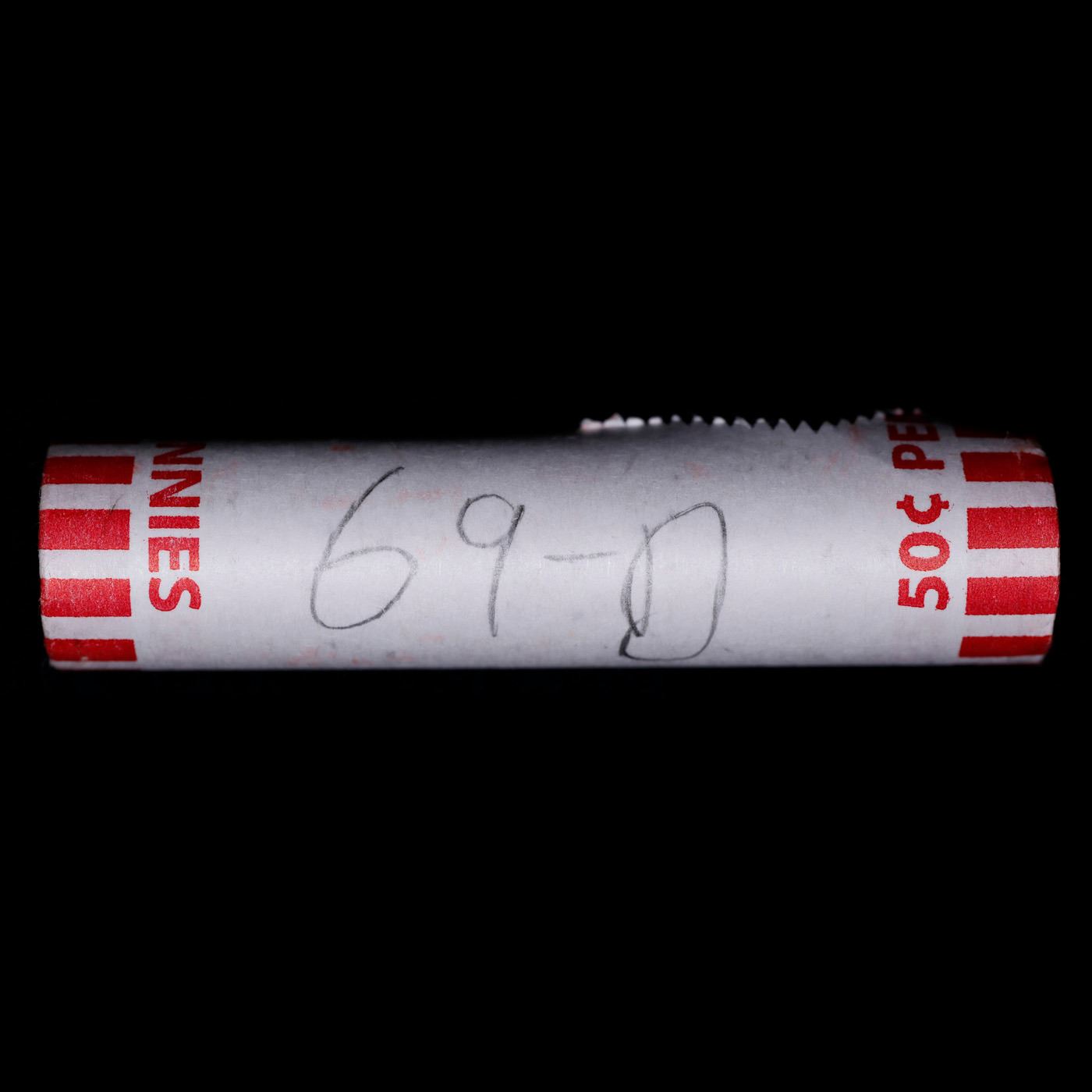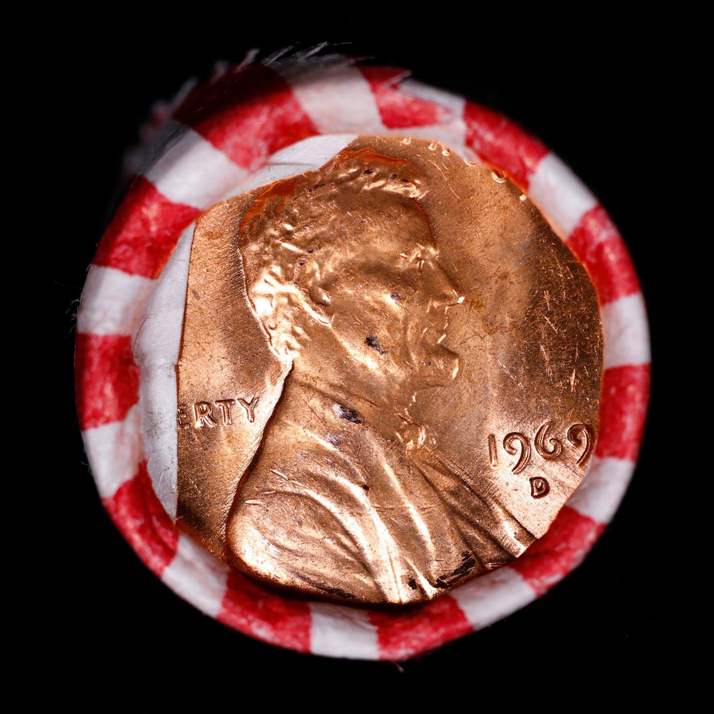 Shotgun Lincoln 1c roll, 1969-d 50 pcs Bank Wrapper.. A terrific Shotgun roll of Lincoln cents. Most if not all coin should be cherry red.