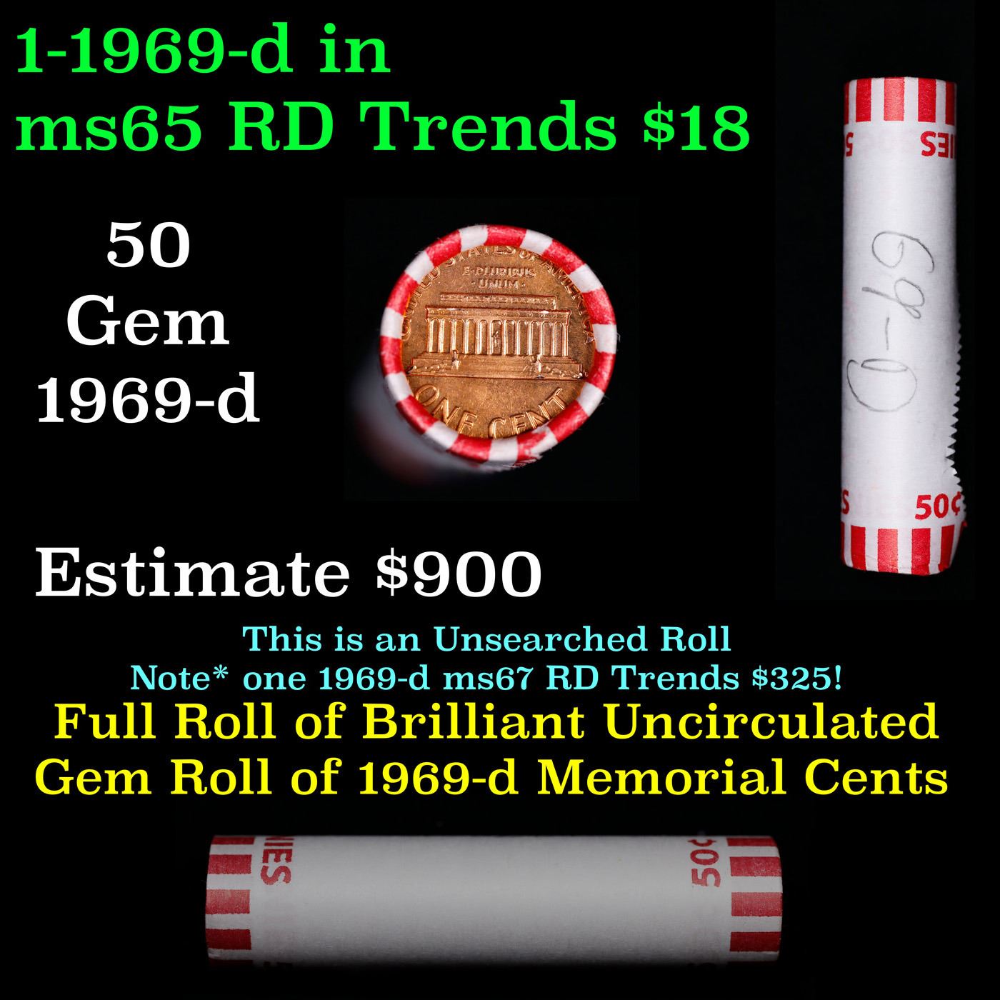 Shotgun Lincoln 1c roll, 1969-d 50 pcs Bank Wrapper.. A terrific Shotgun roll of Lincoln cents. Most if not all coin should be cherry red.