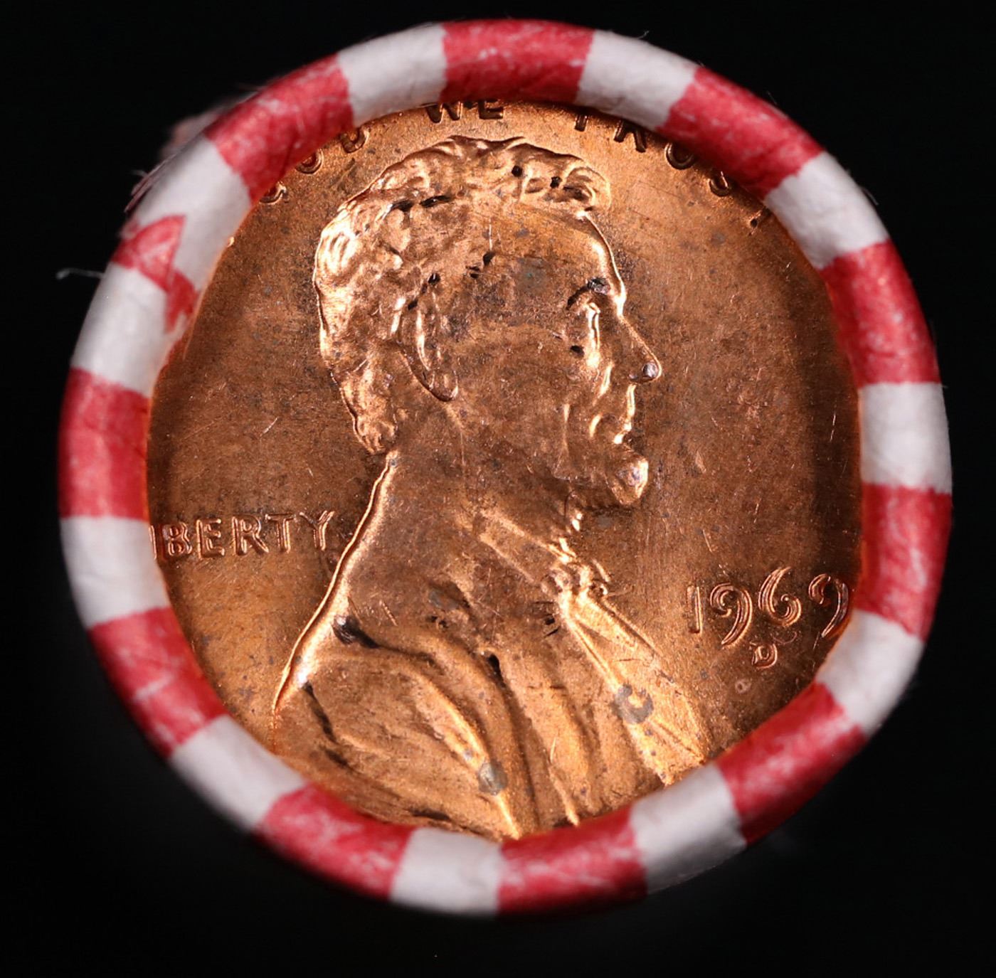 Shotgun Lincoln 1c roll, 1969-d 50 pcs Bank Wrapper.. A terrific Shotgun roll of Lincoln cents. Most if not all coin should be cherry red.