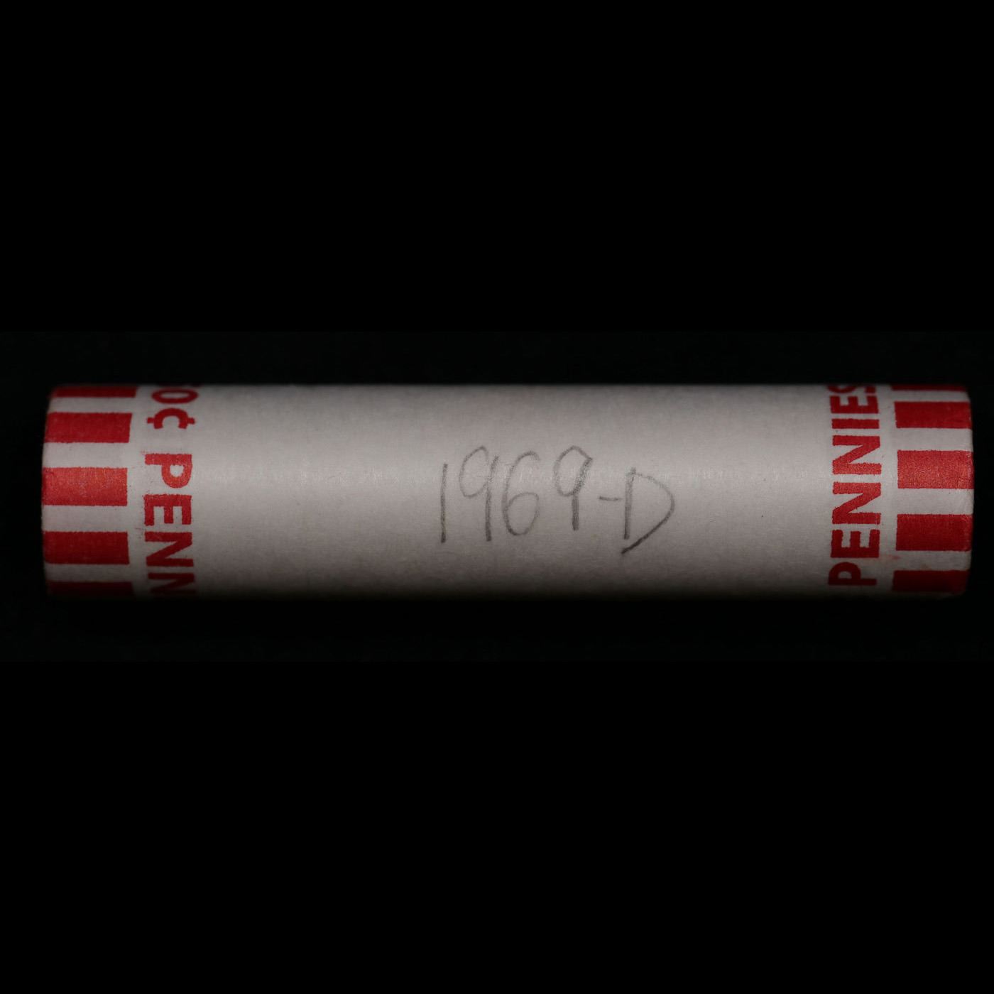Shotgun Lincoln 1c roll, 1969-d 50 pcs Bank Wrapper.. A terrific Shotgun roll of Lincoln cents. Most if not all coin should be cherry red.