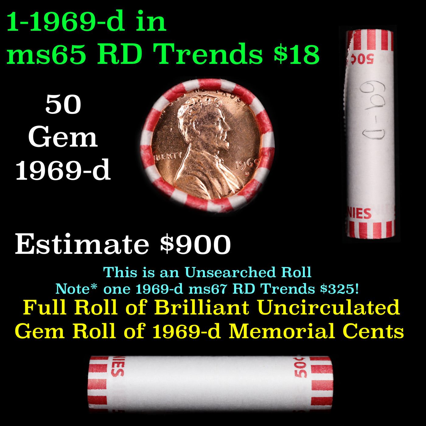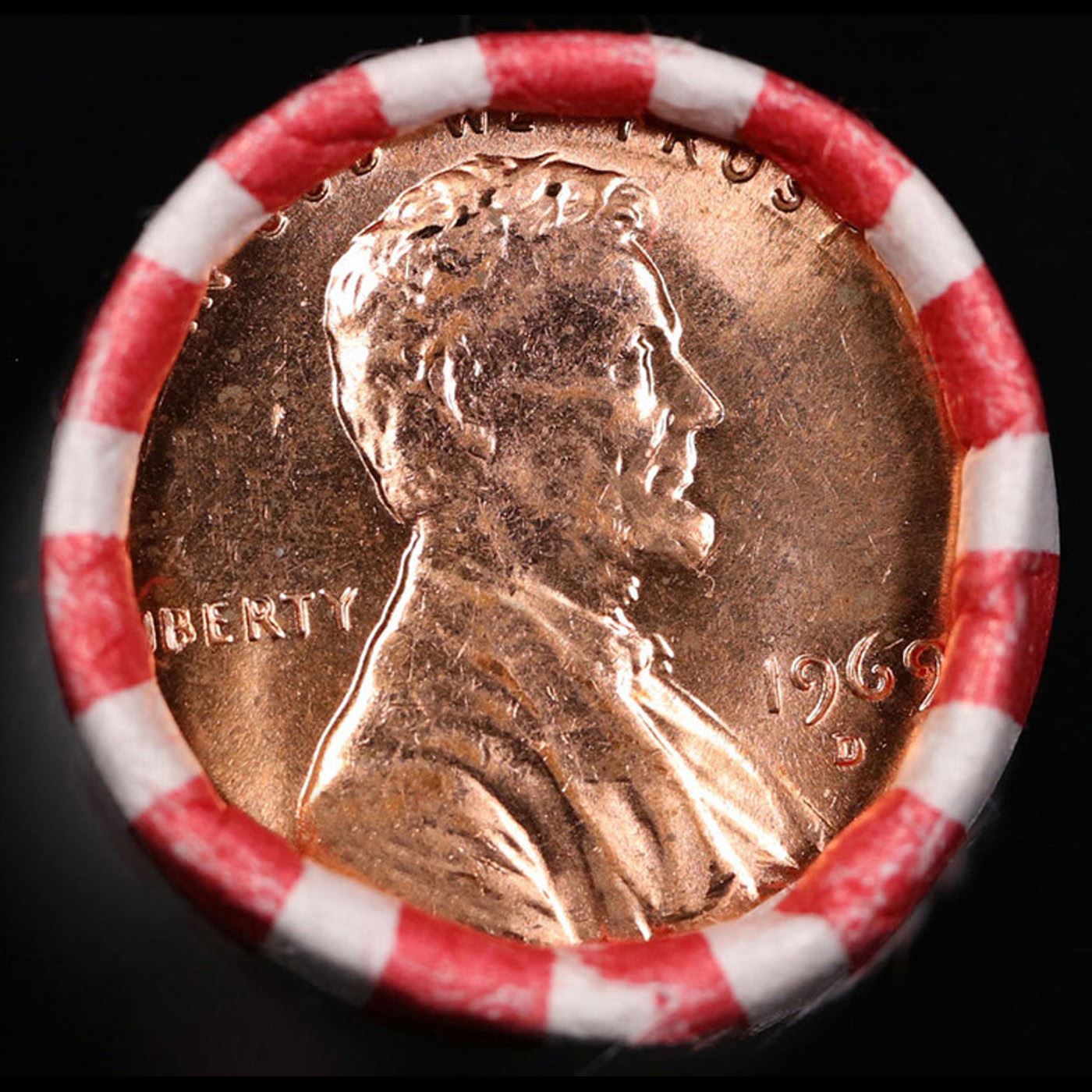 Shotgun Lincoln 1c roll, 1969-d 50 pcs Bank Wrapper.. A terrific Shotgun roll of Lincoln cents. Most if not all coin should be cherry red.