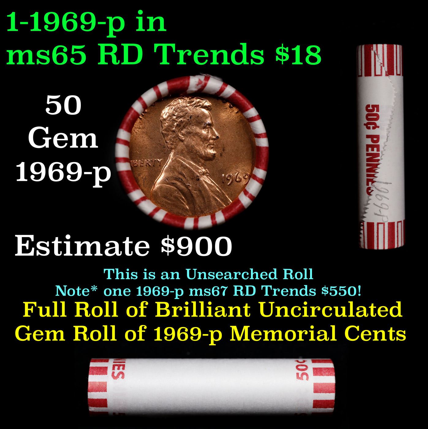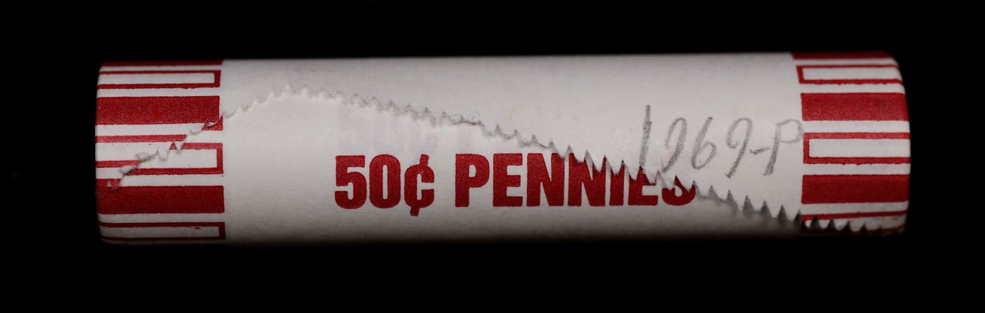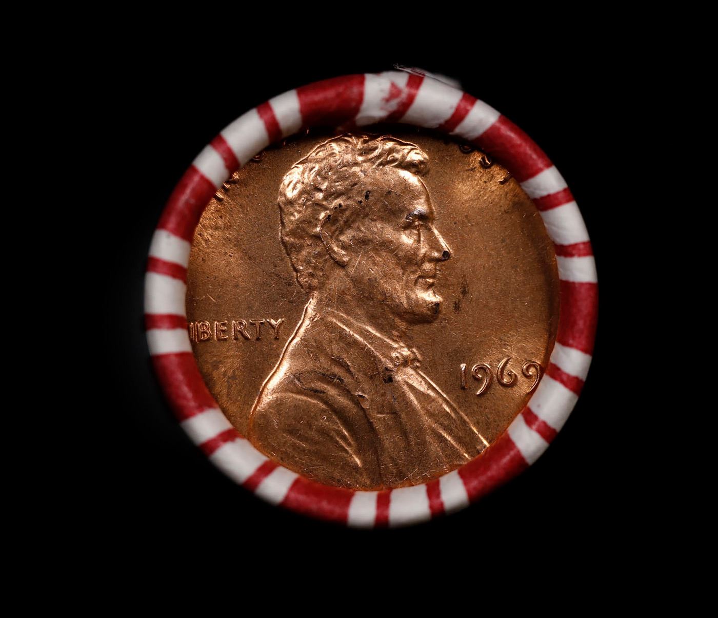 Shotgun Lincoln 1c roll, 1969-p 50 pcs Steel-Strong Wrapper.. A terrific Shotgun roll of Lincoln cents. Most if not all coin should be cherry red.