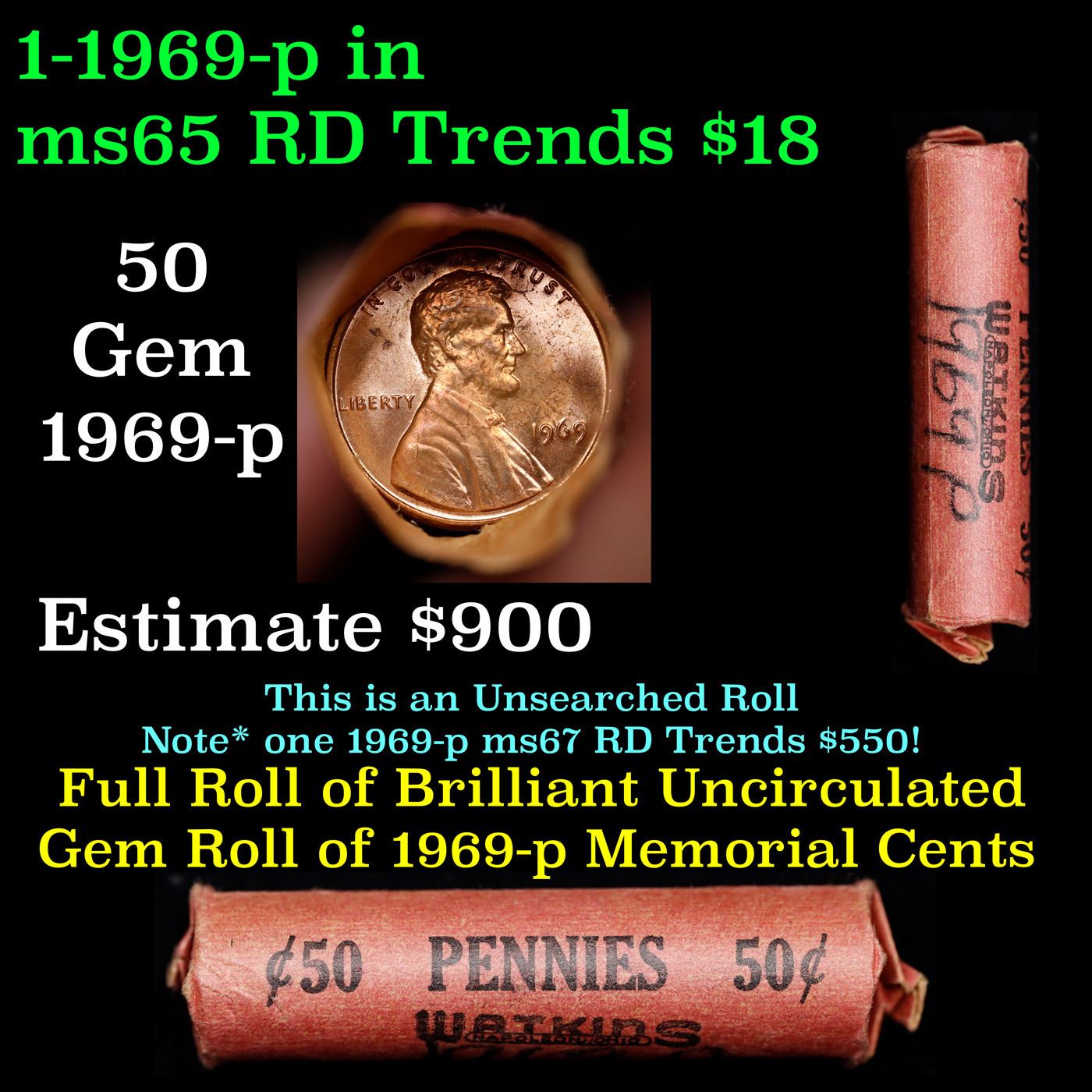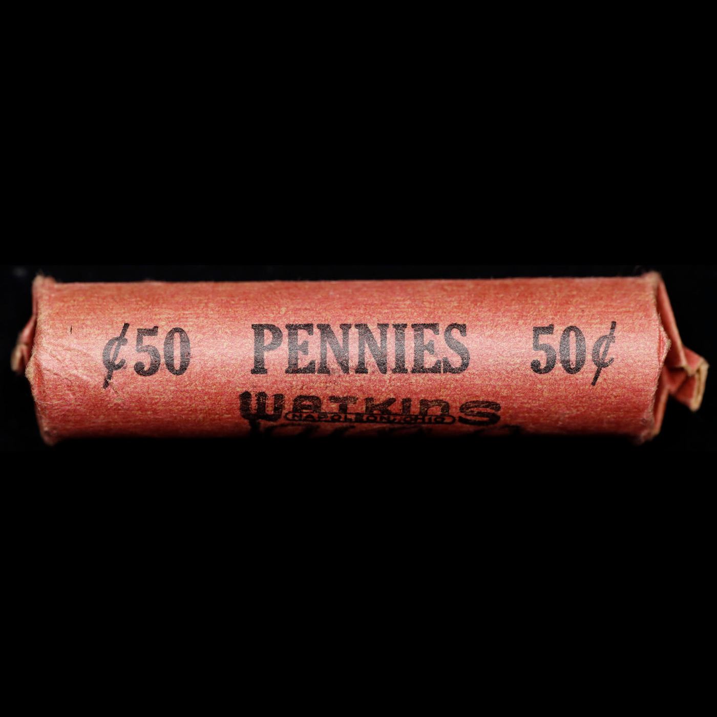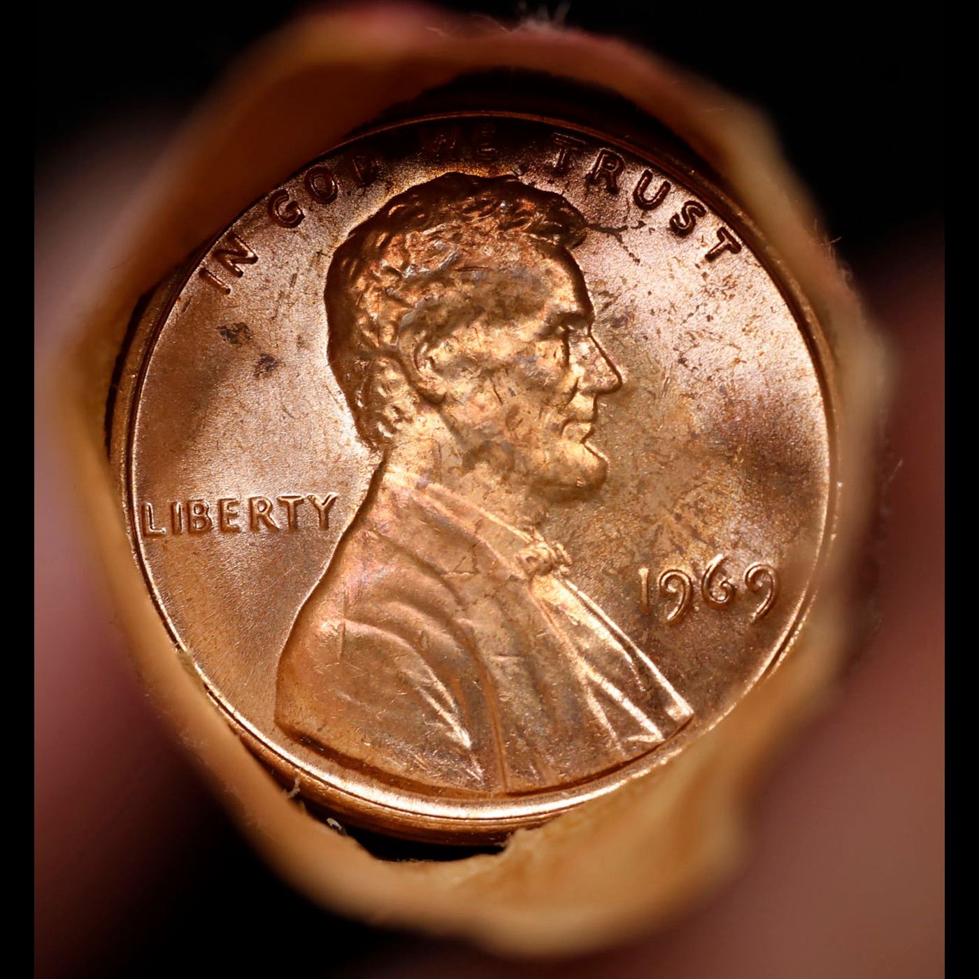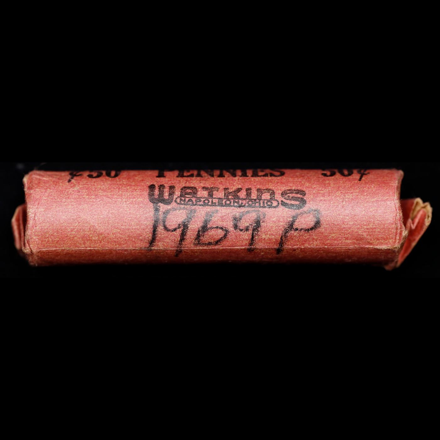 Shotgun Lincoln 1c roll, 1969-p 50 pcs Watkins Wrapper.. A terrific Shotgun roll of Lincoln cents. Most if not all coin should be cherry red.