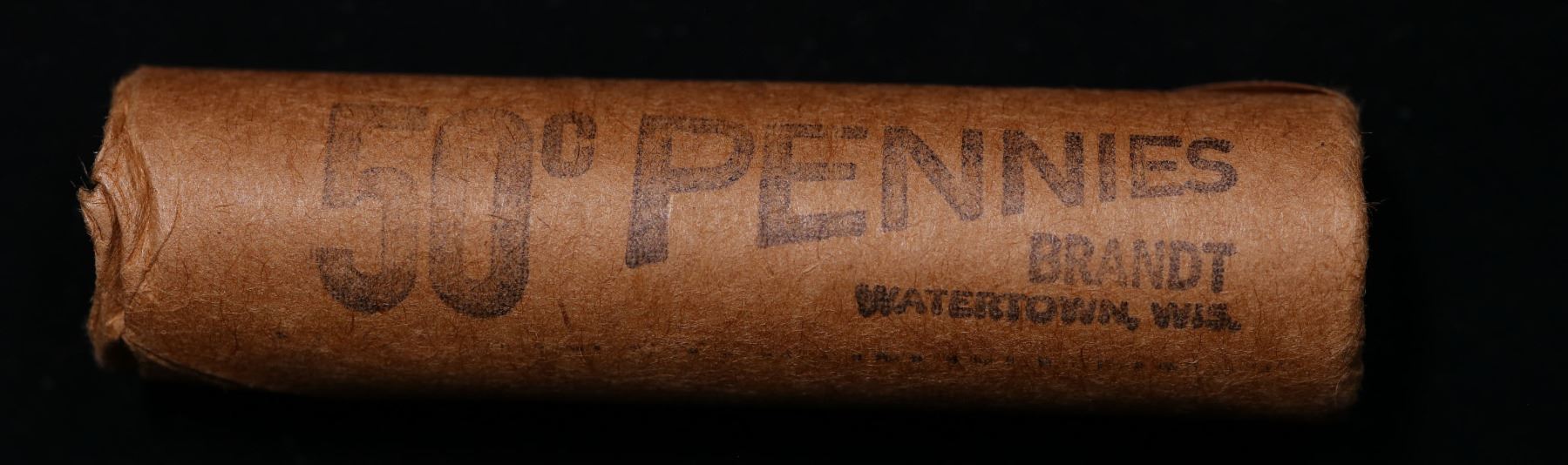 Shotgun Lincoln 1c roll, 1969-s 50 pcs Brandt 50c Wrapper.