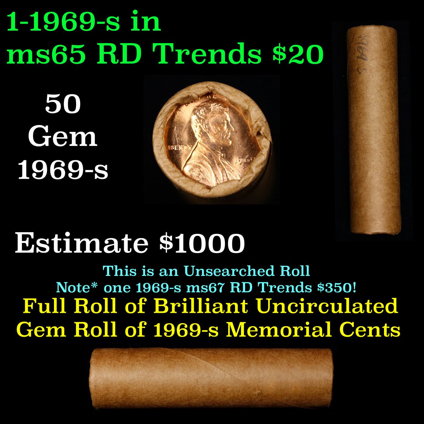 Shotgun Lincoln 1c roll, 1969-s 50 pcs Brandt Wrapper.. A terrific Shotgun roll of Lincoln cents. Most if not all coin should be cherry red.