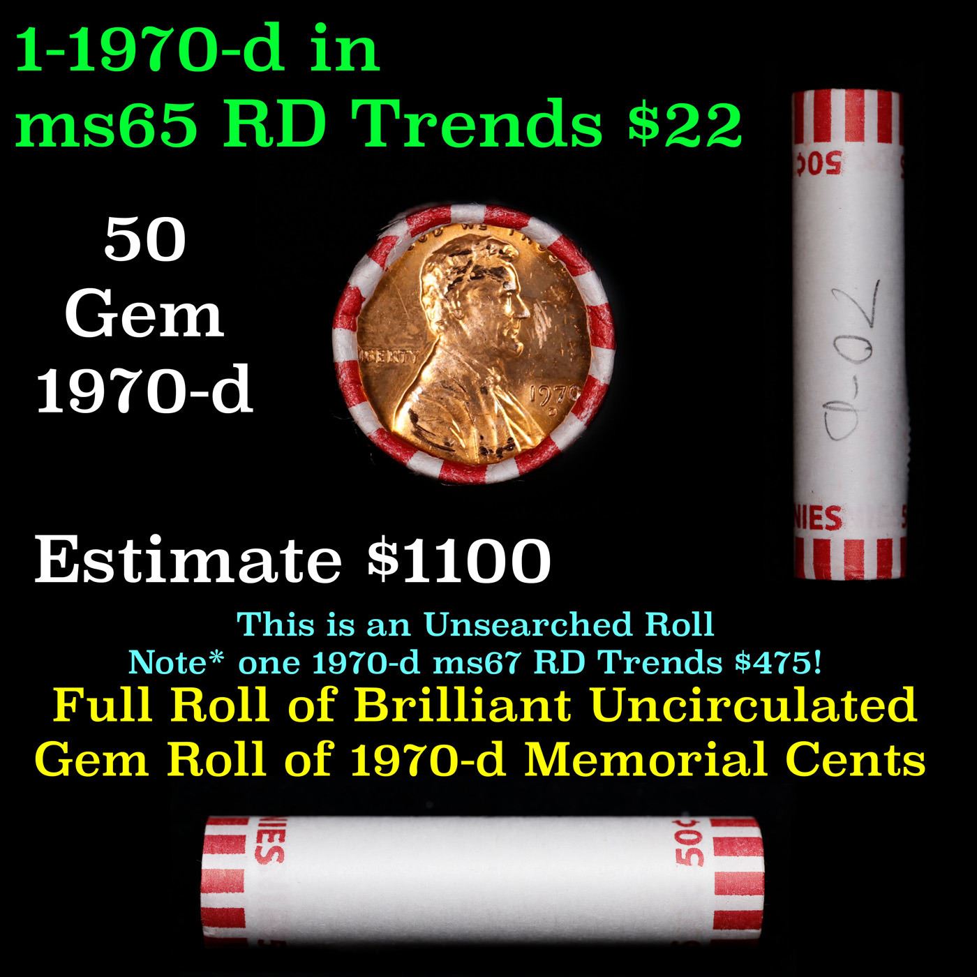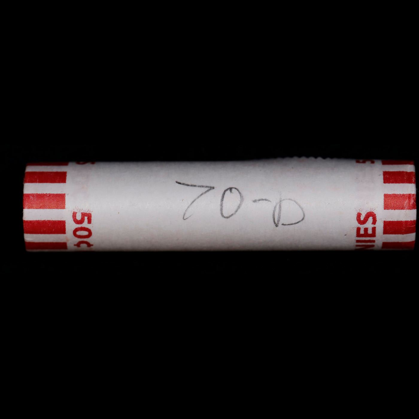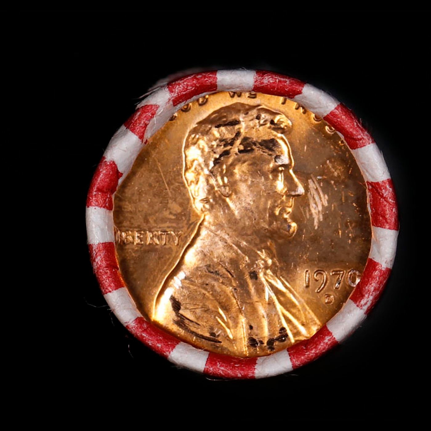 Shotgun Lincoln 1c roll, 1970-d 50 pcs Bank Wrapper.. A terrific Shotgun roll of Lincoln cents. Most if not all coin should be cherry red.