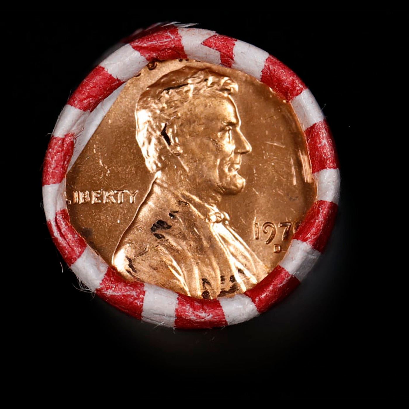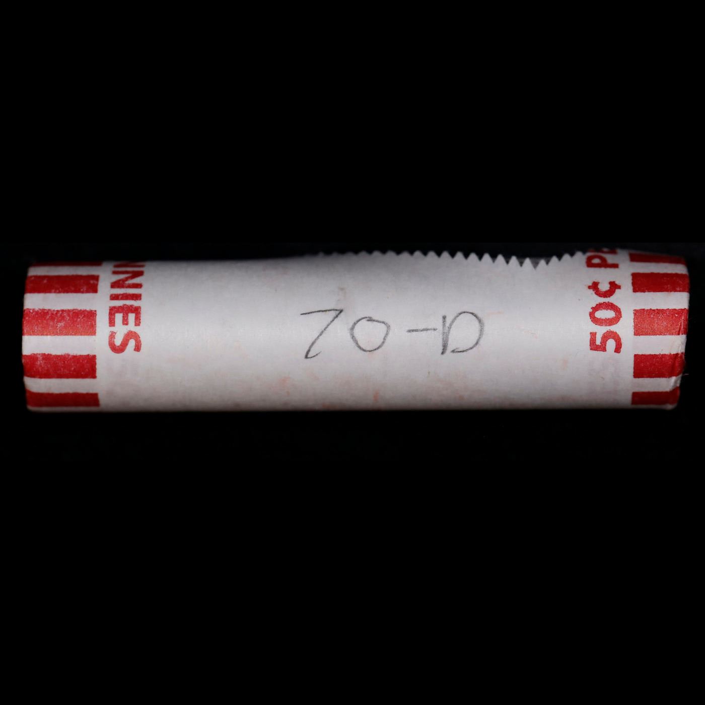 Shotgun Lincoln 1c roll, 1970-d 50 pcs Bank Wrapper.. A terrific Shotgun roll of Lincoln cents. Most if not all coin should be cherry red.