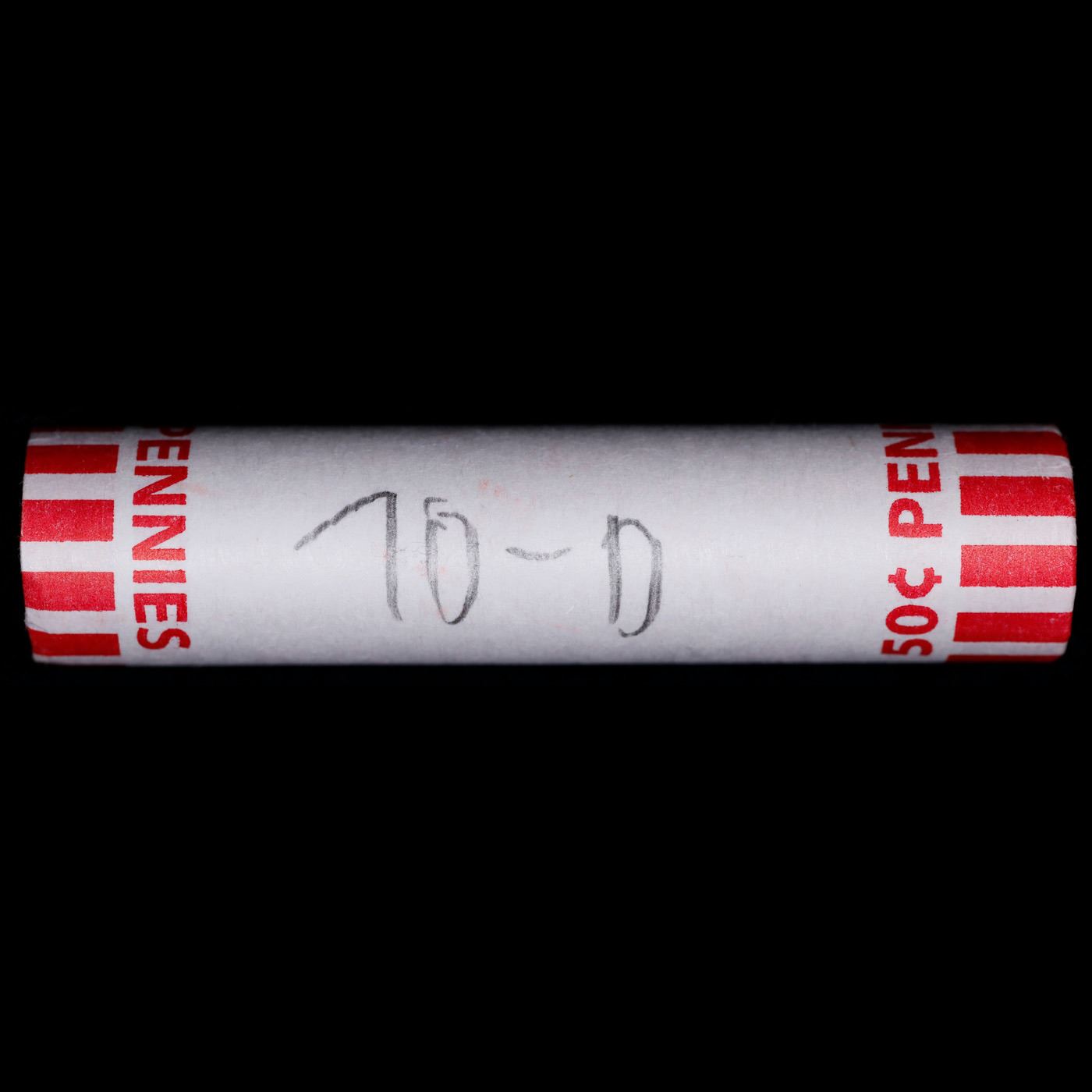 Shotgun Lincoln 1c roll, 1970-d 50 pcs Bank Wrapper.. A terrific Shotgun roll of Lincoln cents. Most if not all coin should be cherry red.