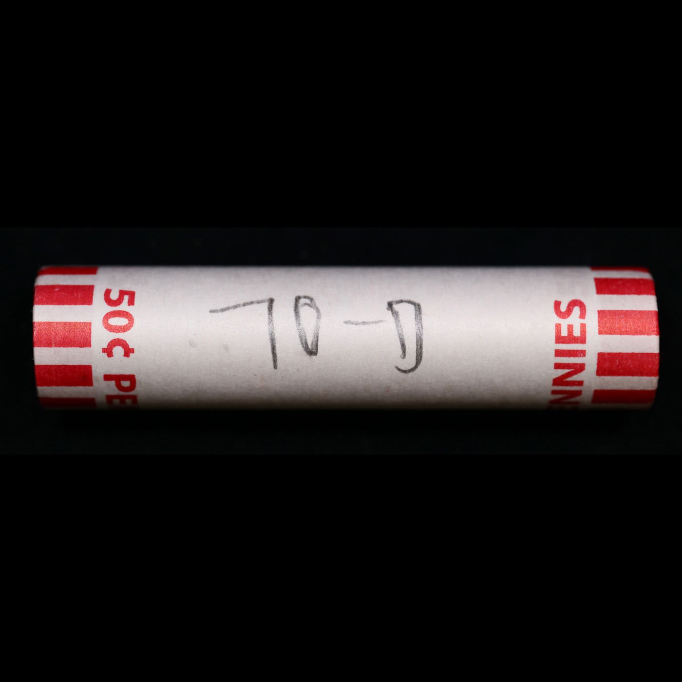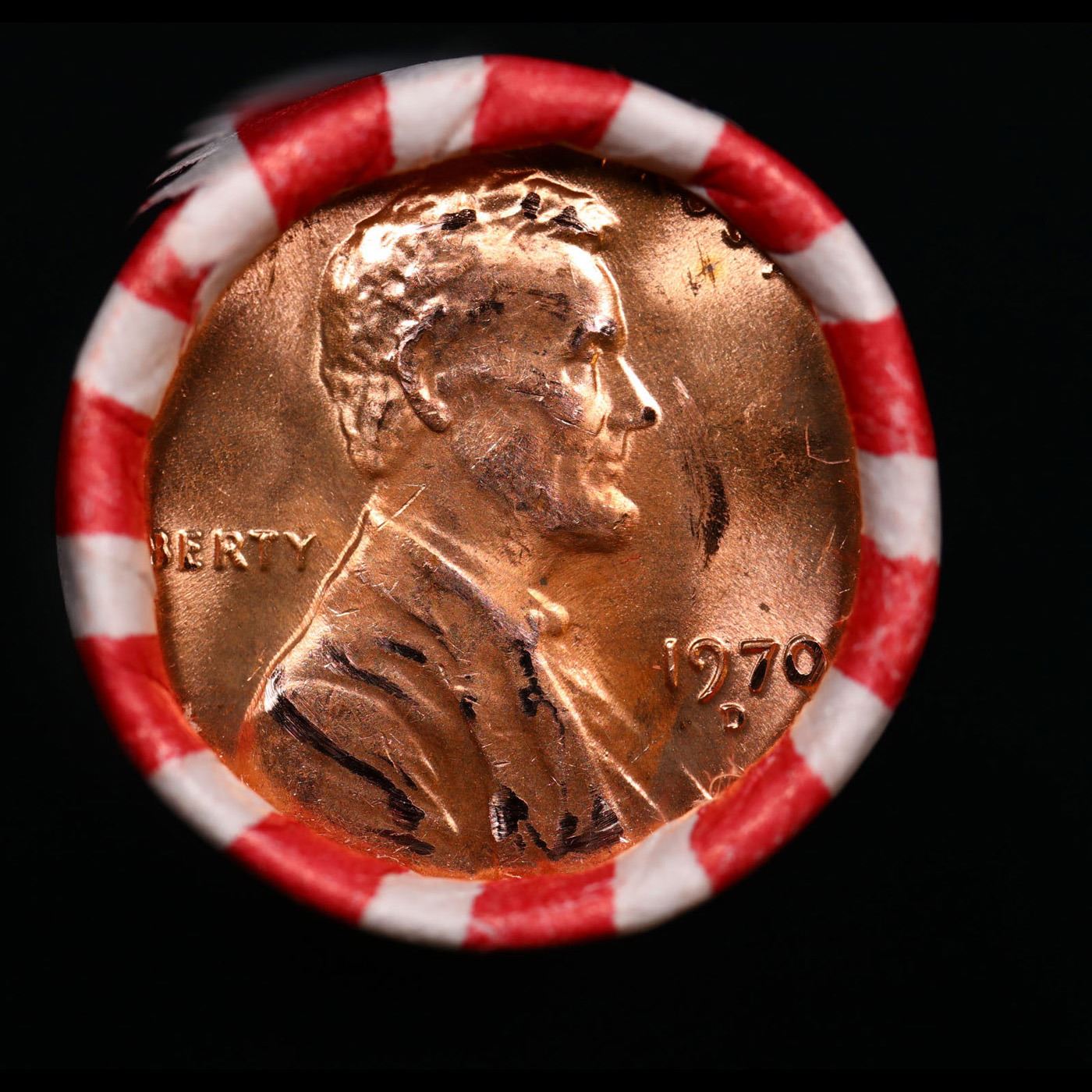 Shotgun Lincoln 1c roll, 1970-d 50 pcs Bank Wrapper.. A terrific Shotgun roll of Lincoln cents. Most if not all coin should be cherry red.