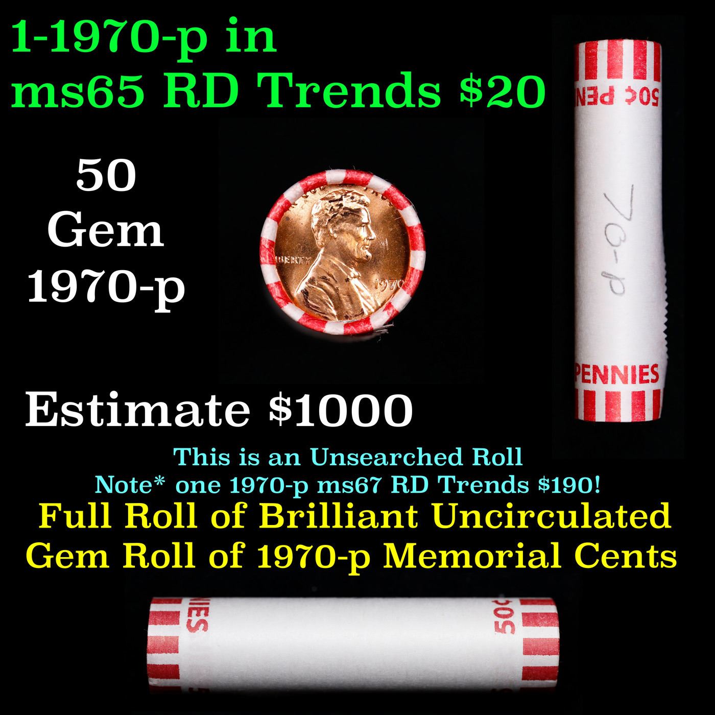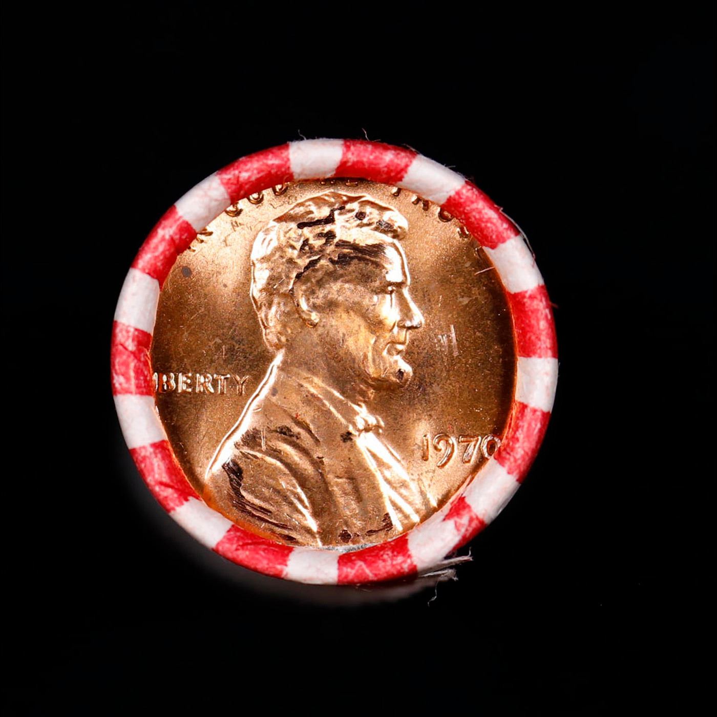 Shotgun Lincoln 1c roll, 1970-p 50 pcs Bank Wrapper.. A terrific Shotgun roll of Lincoln cents. Most if not all coin should be cherry red.