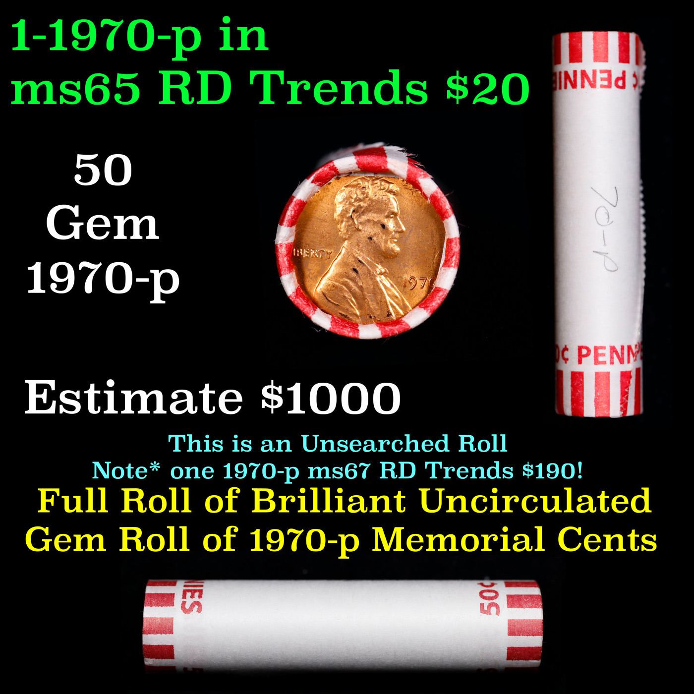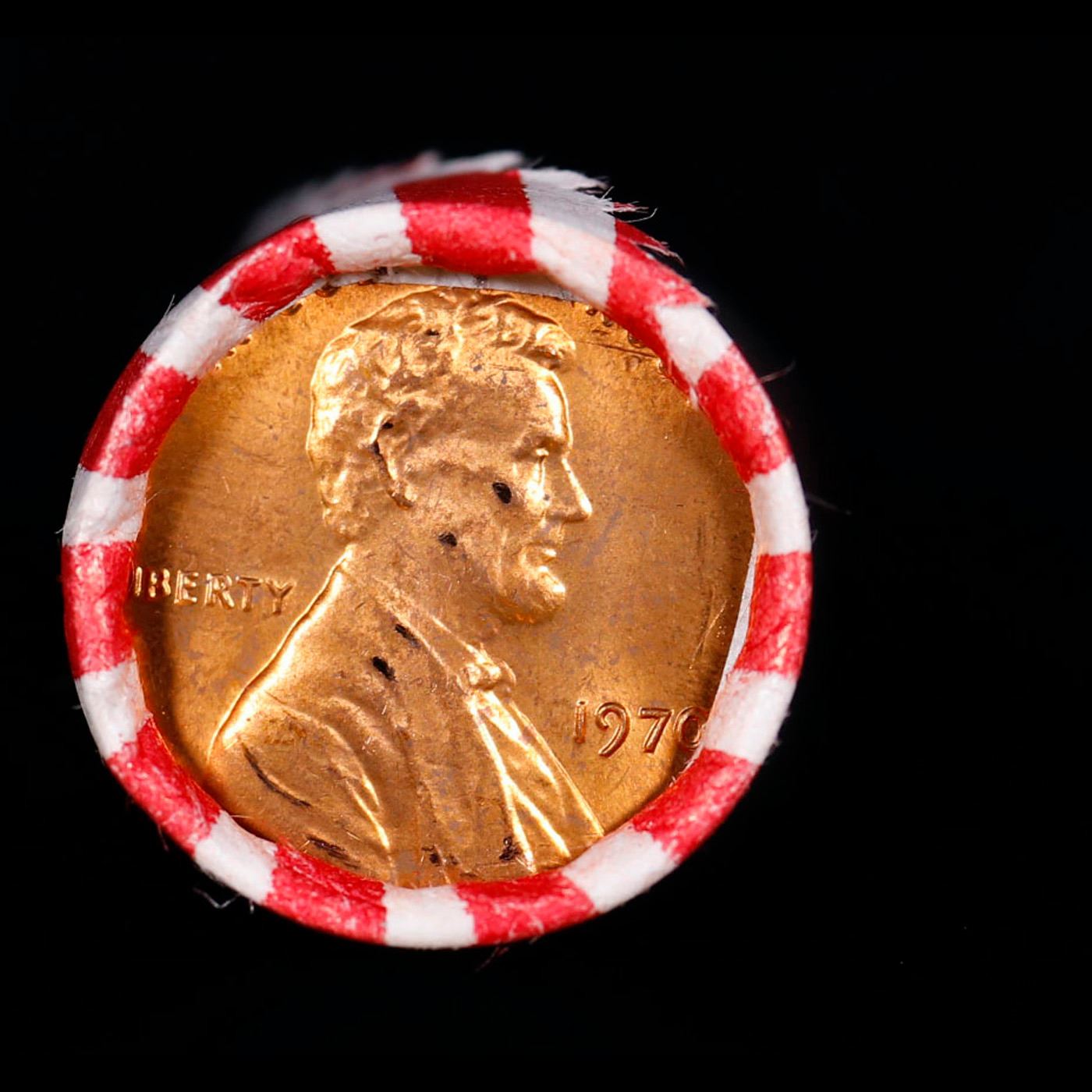 Shotgun Lincoln 1c roll, 1970-p 50 pcs Bank Wrapper.. A terrific Shotgun roll of Lincoln cents. Most if not all coin should be cherry red.