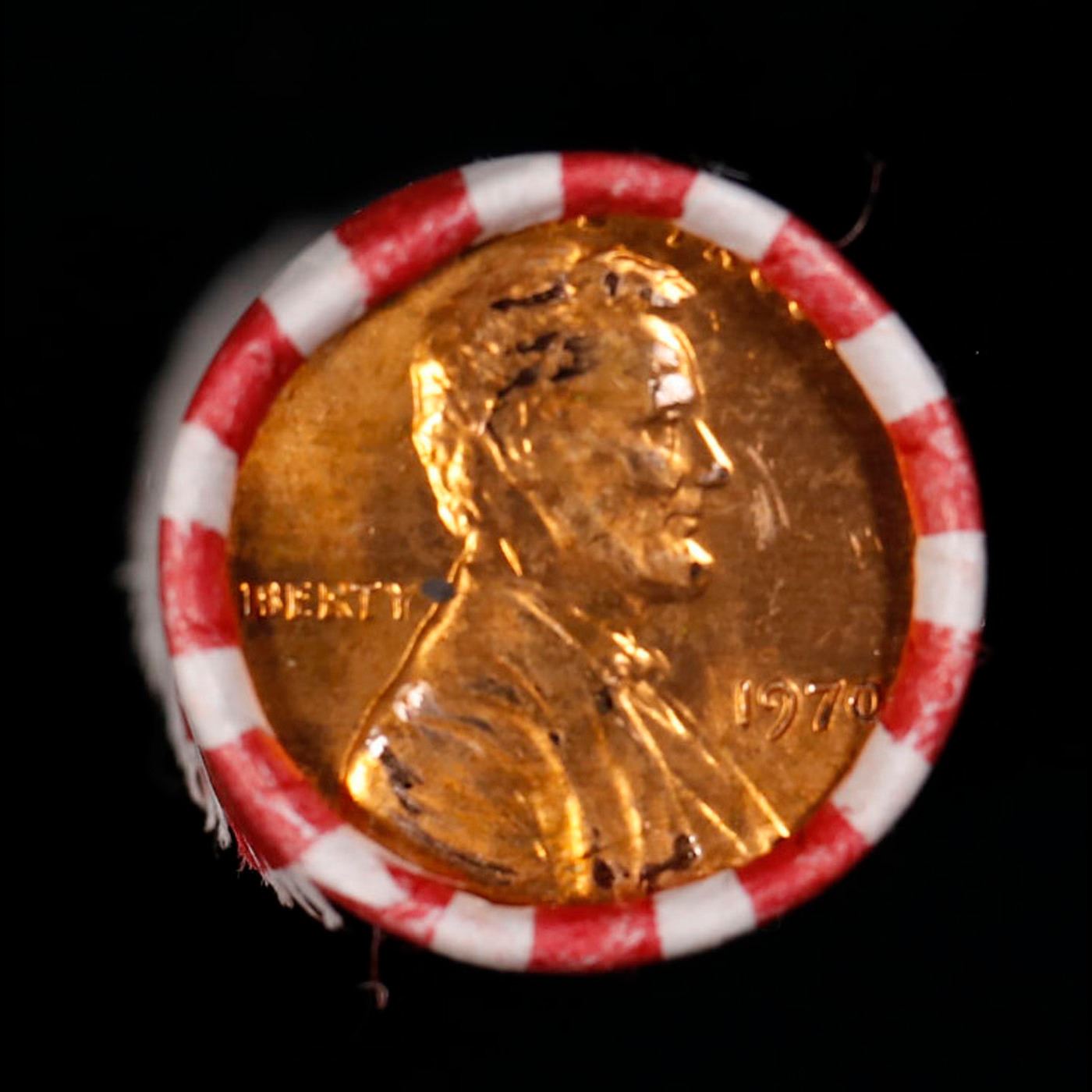 Shotgun Lincoln 1c roll, 1970-p 50 pcs Bank Wrapper.. A terrific Shotgun roll of Lincoln cents. Most if not all coin should be cherry red.