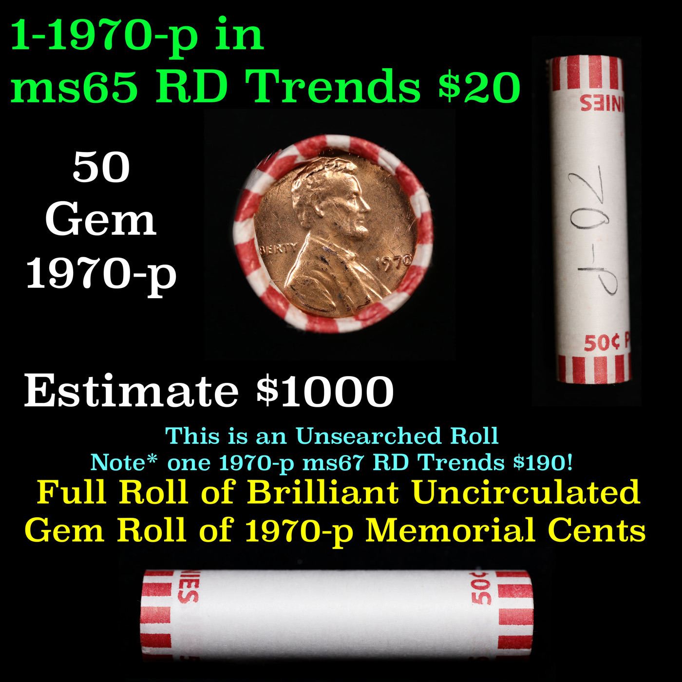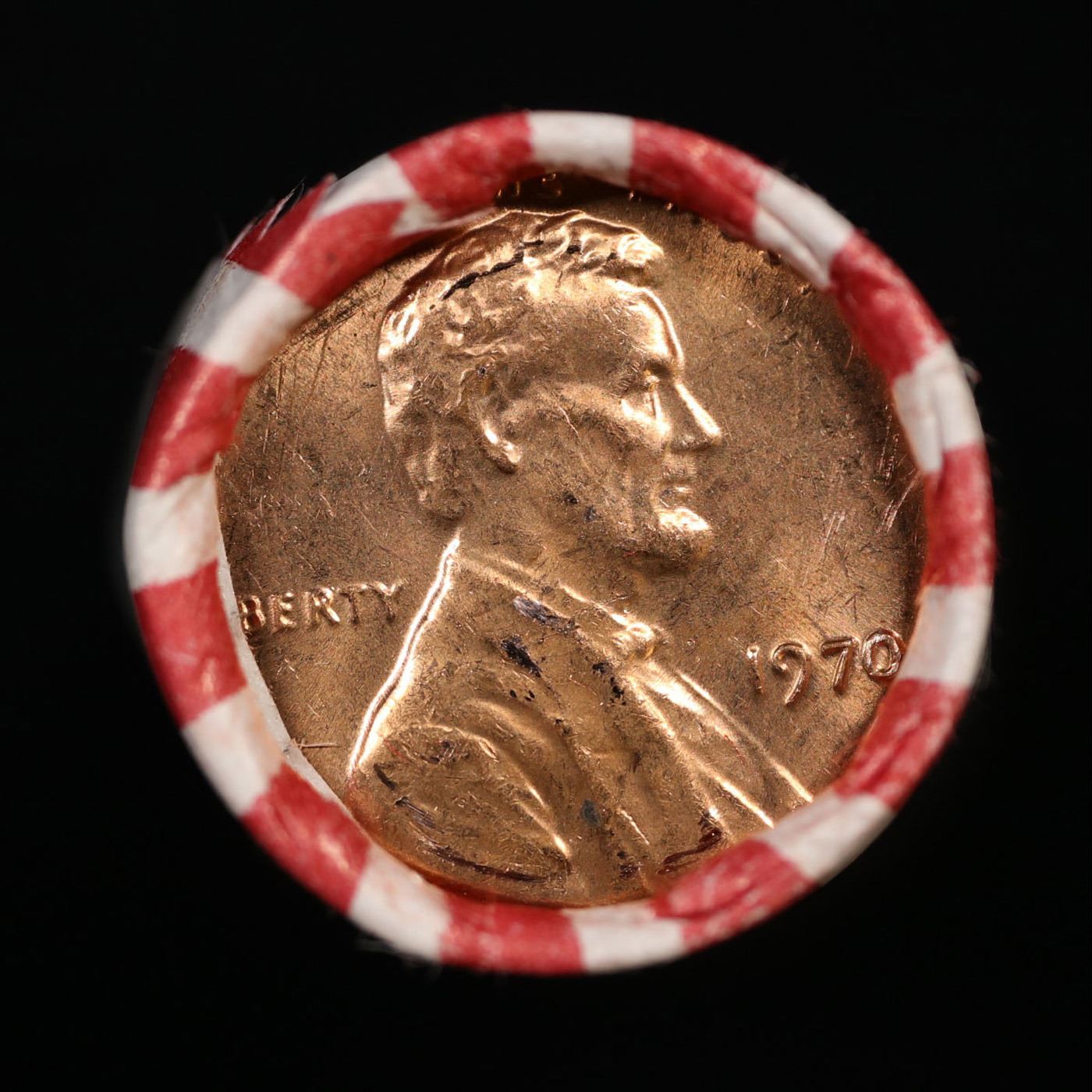 Shotgun Lincoln 1c roll, 1970-p 50 pcs Bank Wrapper.. A terrific Shotgun roll of Lincoln cents. Most if not all coin should be cherry red.