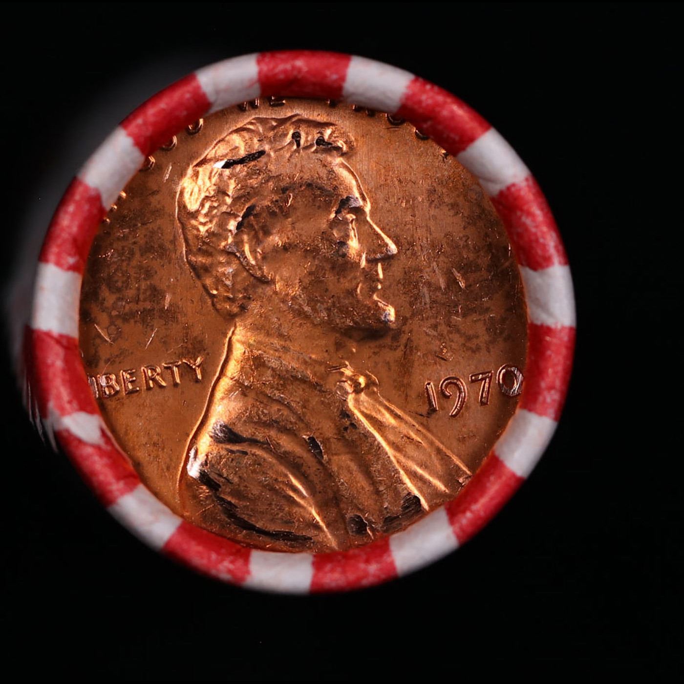 Shotgun Lincoln 1c roll, 1970-p 50 pcs Bank Wrapper.. A terrific Shotgun roll of Lincoln cents. Most if not all coin should be cherry red.