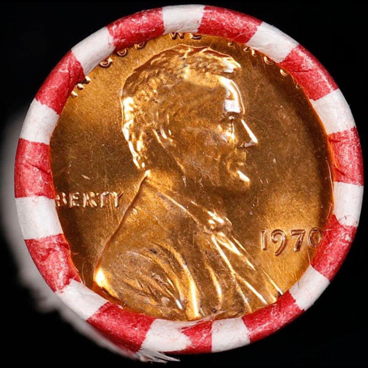 Shotgun Lincoln 1c roll, 1970-p 50 pcs Bank Wrapper.. A terrific Shotgun roll of Lincoln cents. Most if not all coin should be cherry red.