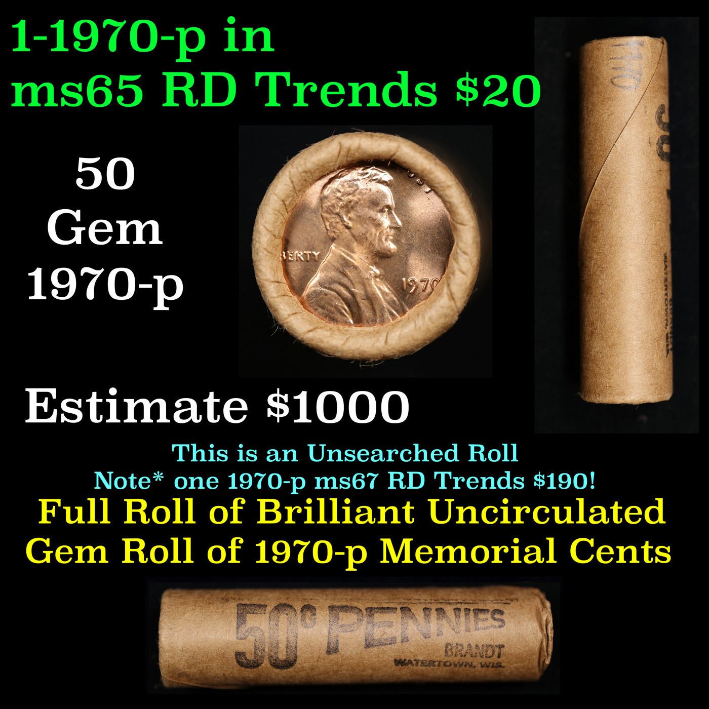 . Shotgun Lincoln 1c roll, 1970-p 50 pcs Brandt Wrapper Grades