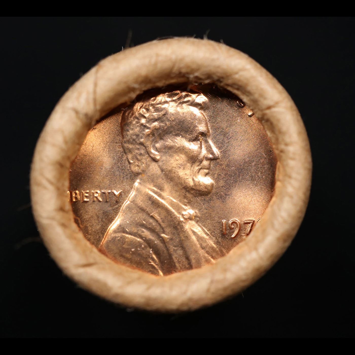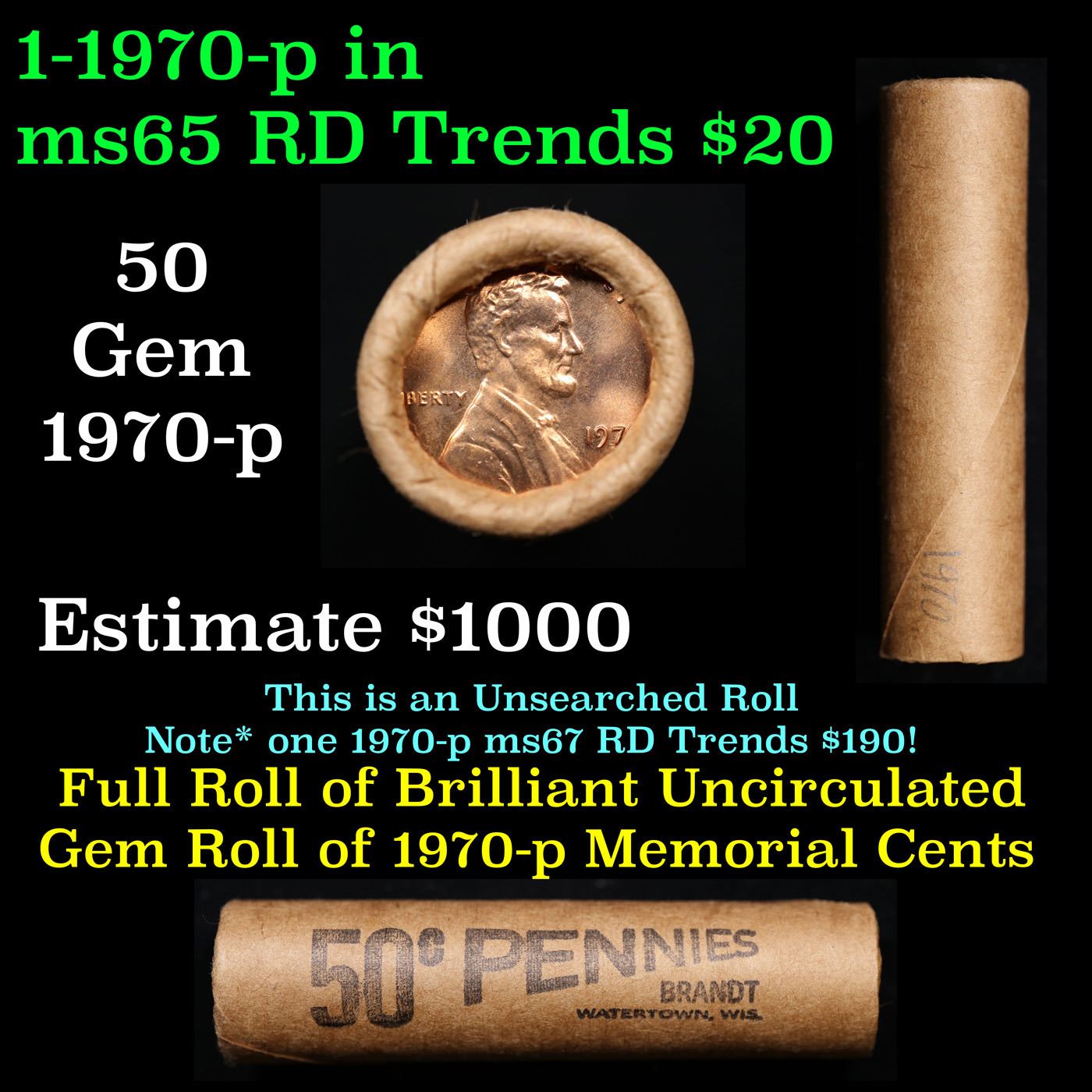 Shotgun Lincoln 1c roll, 1970-p 50 pcs Brandt Wrapper.. A terrific Shotgun roll of Lincoln cents. All coins appear to be cherry red. Trends ms65 rd $18