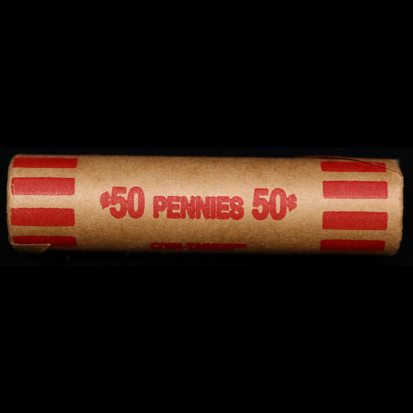 Shotgun Lincoln 1c roll, 1970-s 50 pcs Coin Tamer Wrapper.. A terrific Shotgun roll of Lincoln cents. Most if not all coin should be cherry red.