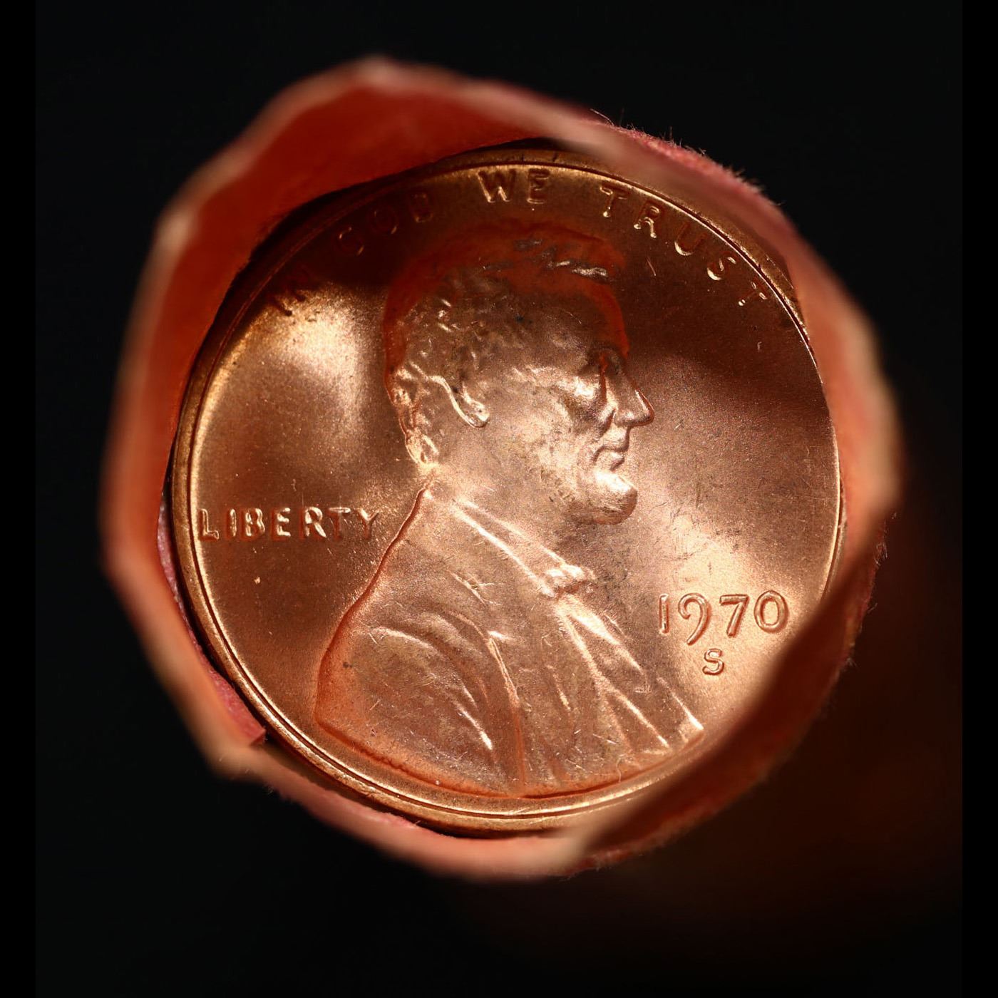 Shotgun Lincoln 1c roll, 1970-s 50 pcs Steel Strong Wrapper.. A terrific Shotgun roll of Lincoln cents. Most if not all coin should be cherry red.