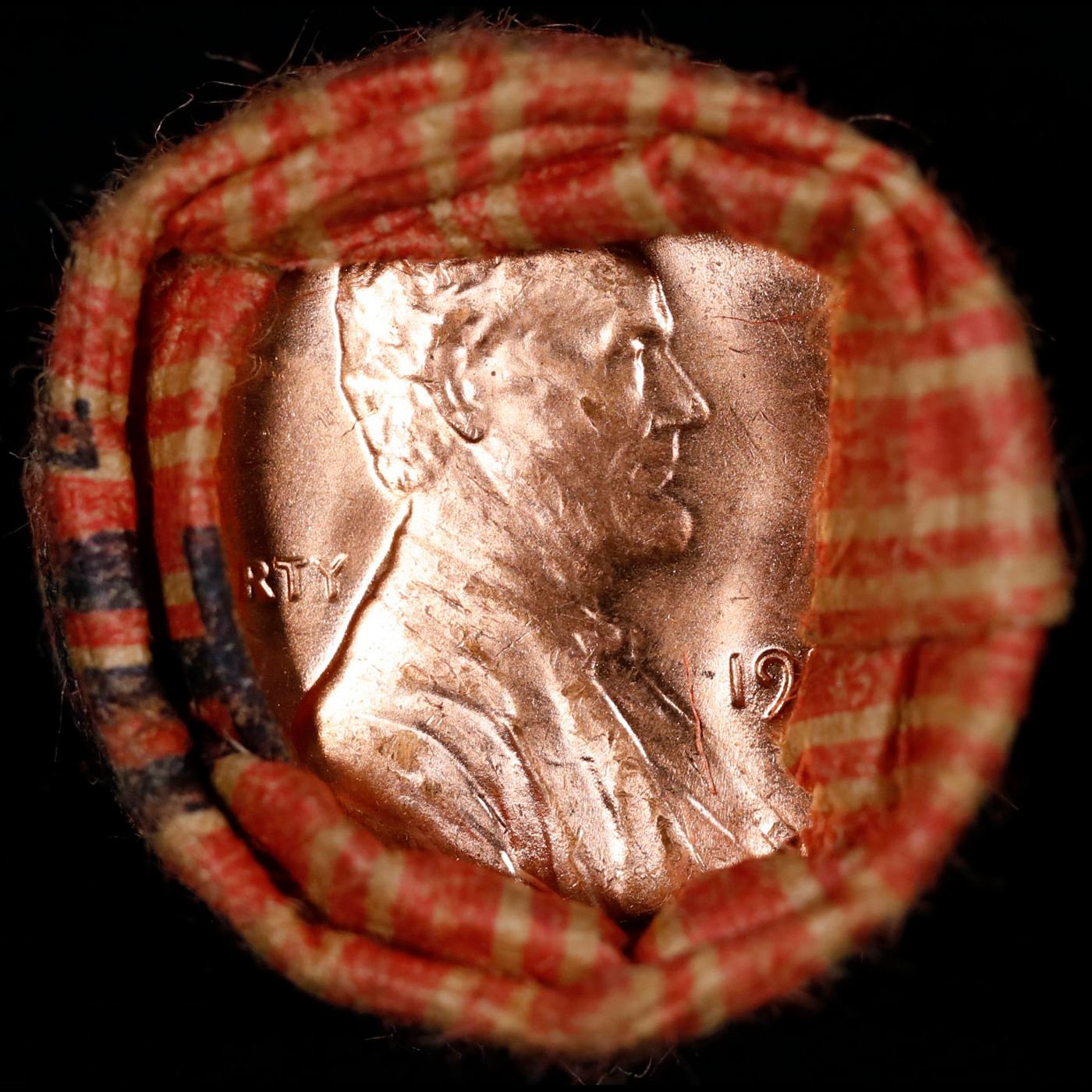 Shotgun Lincoln 1c roll, 1970-s 50 pcs Wrapper . A terrific Shotgun roll of Lincoln cents. All coins appear to be cherry red. Trends ms65 rd $20