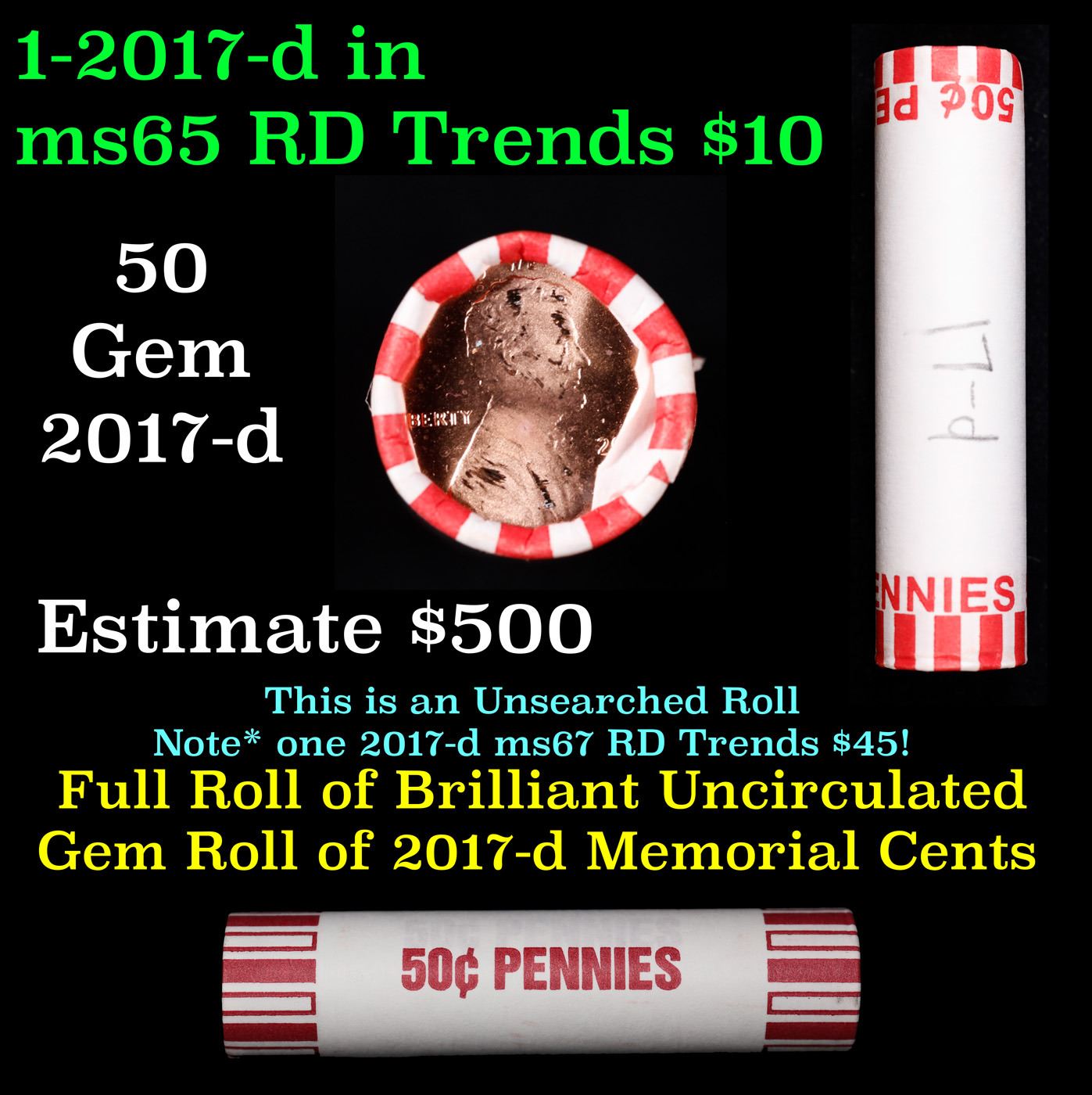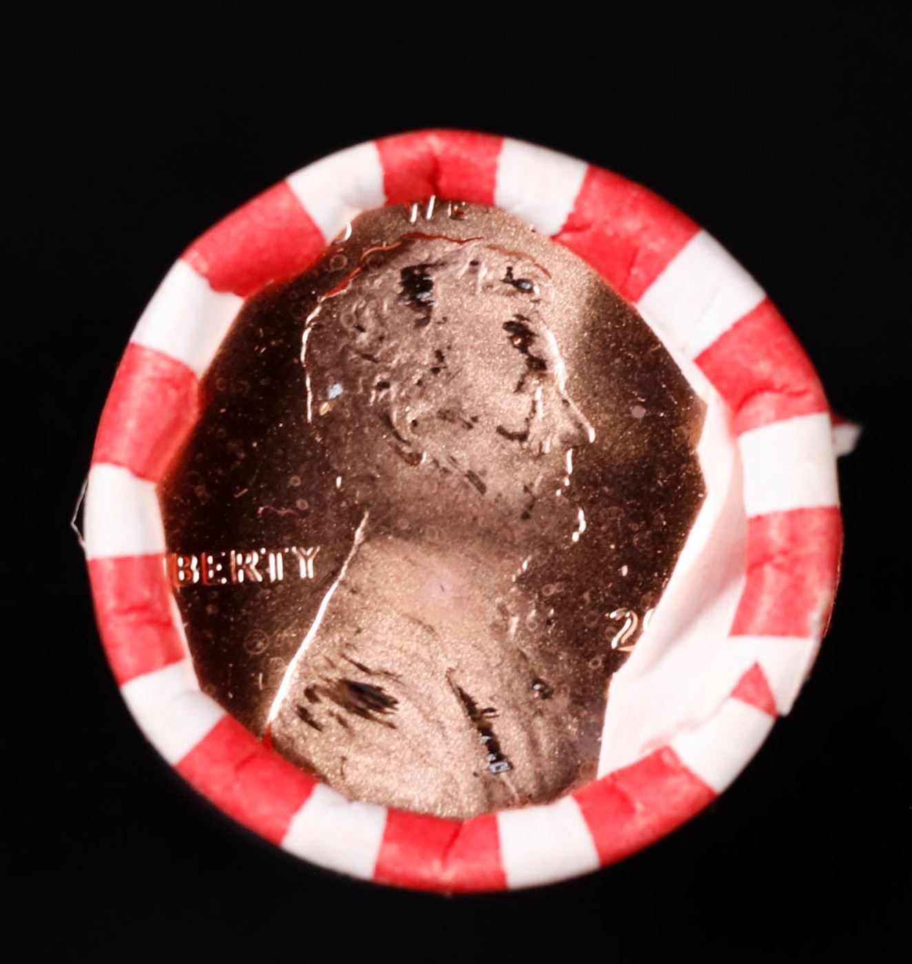 Shotgun Lincoln 1c roll, 1971-d 50 pcs Bank Wrapper.. A terrific Shotgun roll of Lincoln cents. Most if not all coin should be cherry red.