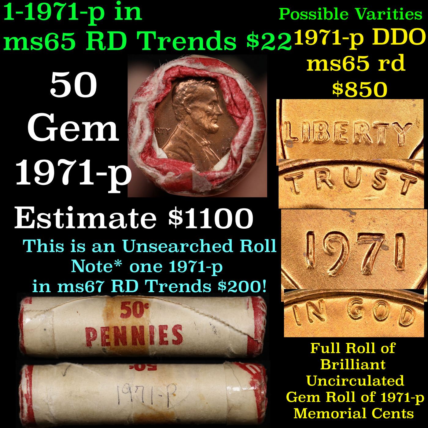Shotgun Lincoln 1c roll, 1971-p 50 pcs Bank Wrapper.. A terrific Shotgun roll of Lincoln cents. Most if not all coin should be cherry red.