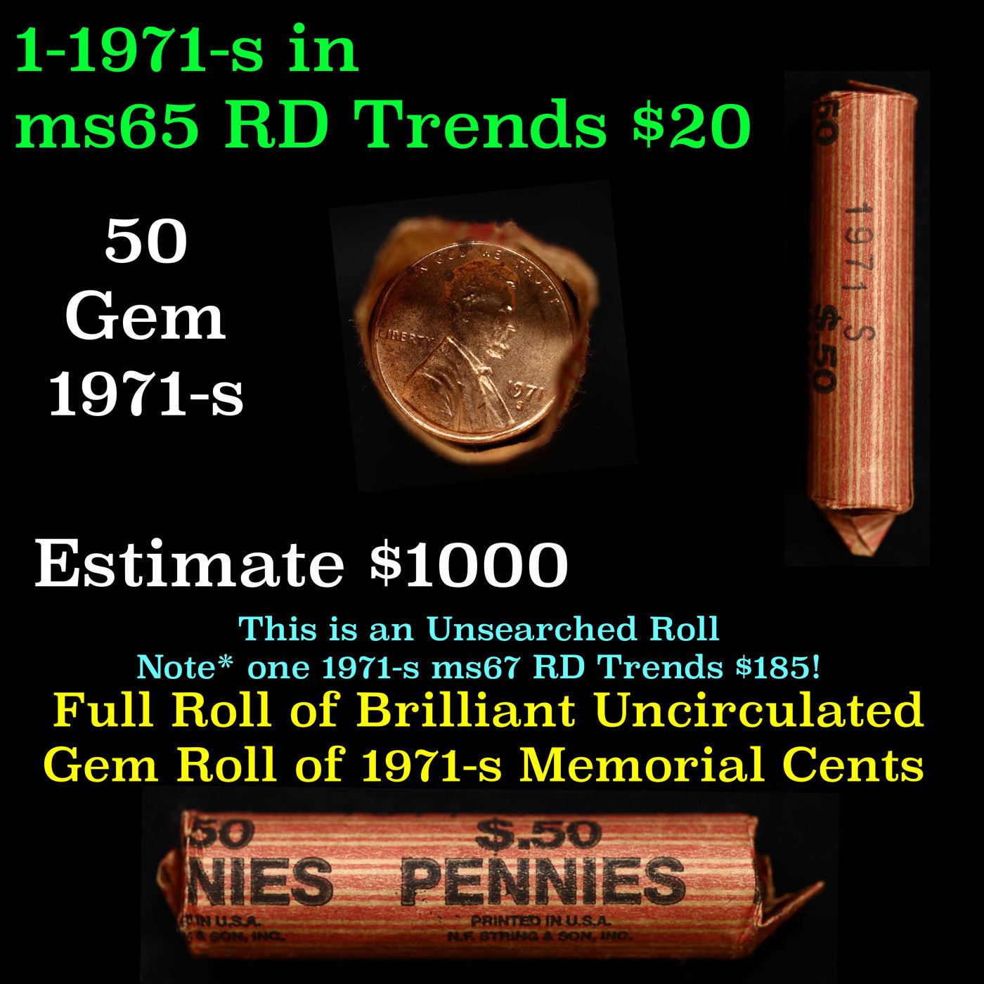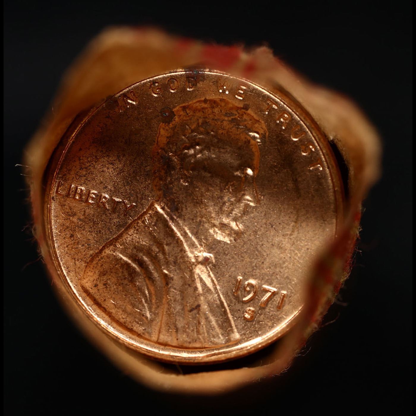 Shotgun Lincoln 1c roll, 1971-s 50 pcs Brandt Wrapper.. A terrific Shotgun roll of Lincoln cents. Most if not all coin should be cherry red.