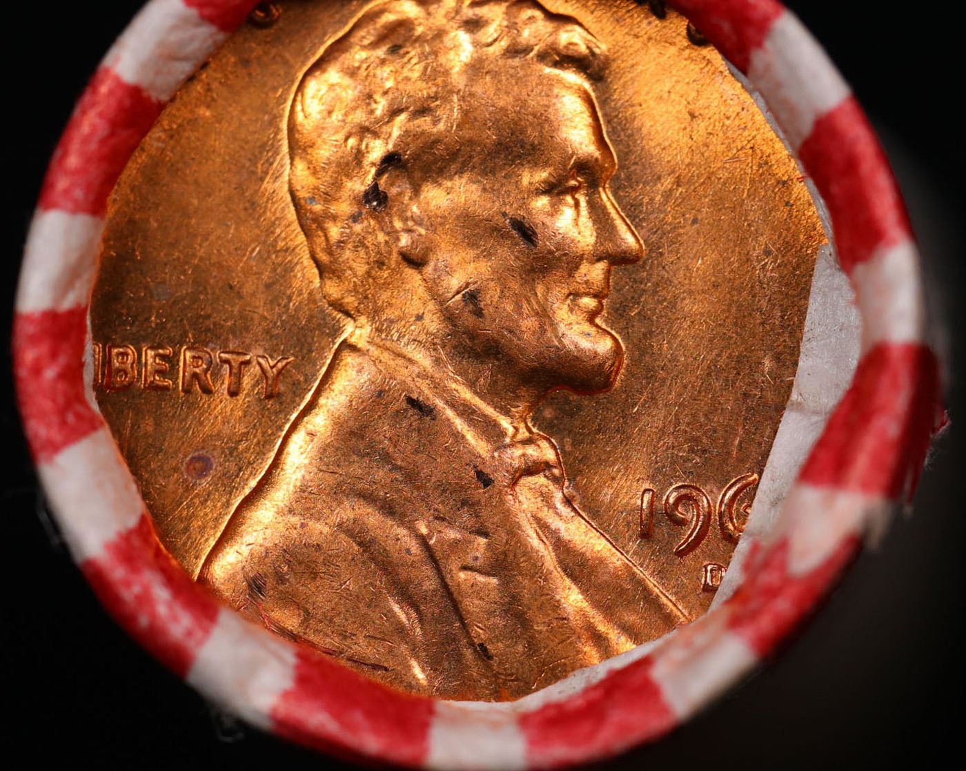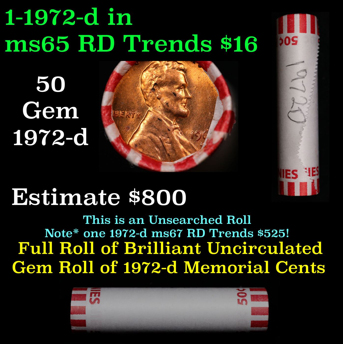 Shotgun Lincoln 1c roll, 1972-d 50 pcs Bank Wrapper.. A terrific Shotgun roll of Lincoln cents. Most if not all coin should be cherry red.