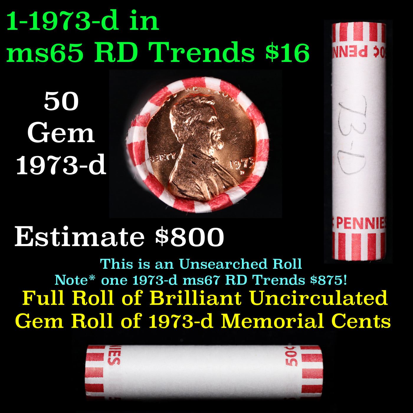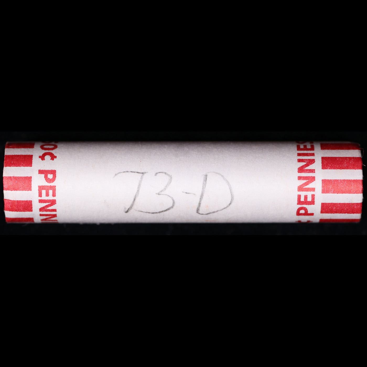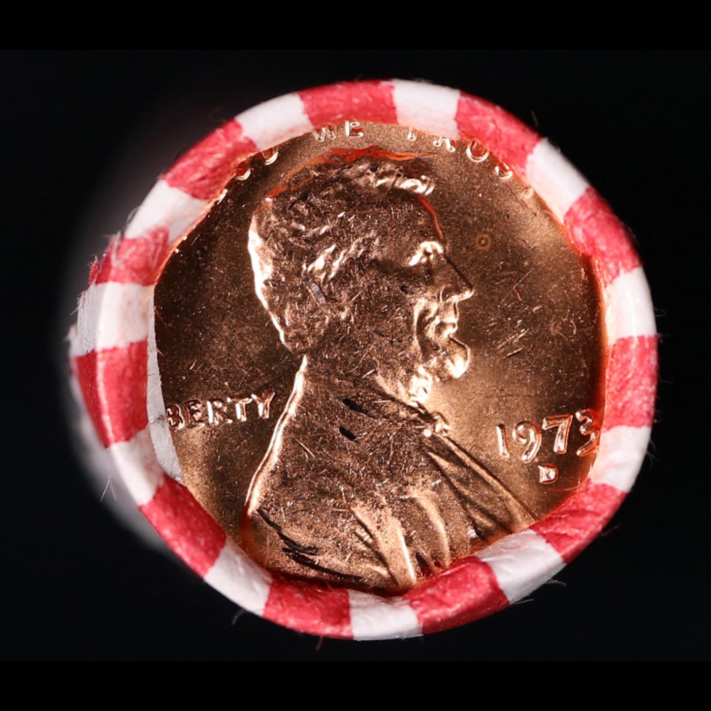 Shotgun Lincoln 1c roll, 1973-d 50 pcs Bank Wrapper.. A terrific Shotgun roll of Lincoln cents. Most if not all coin should be cherry red.