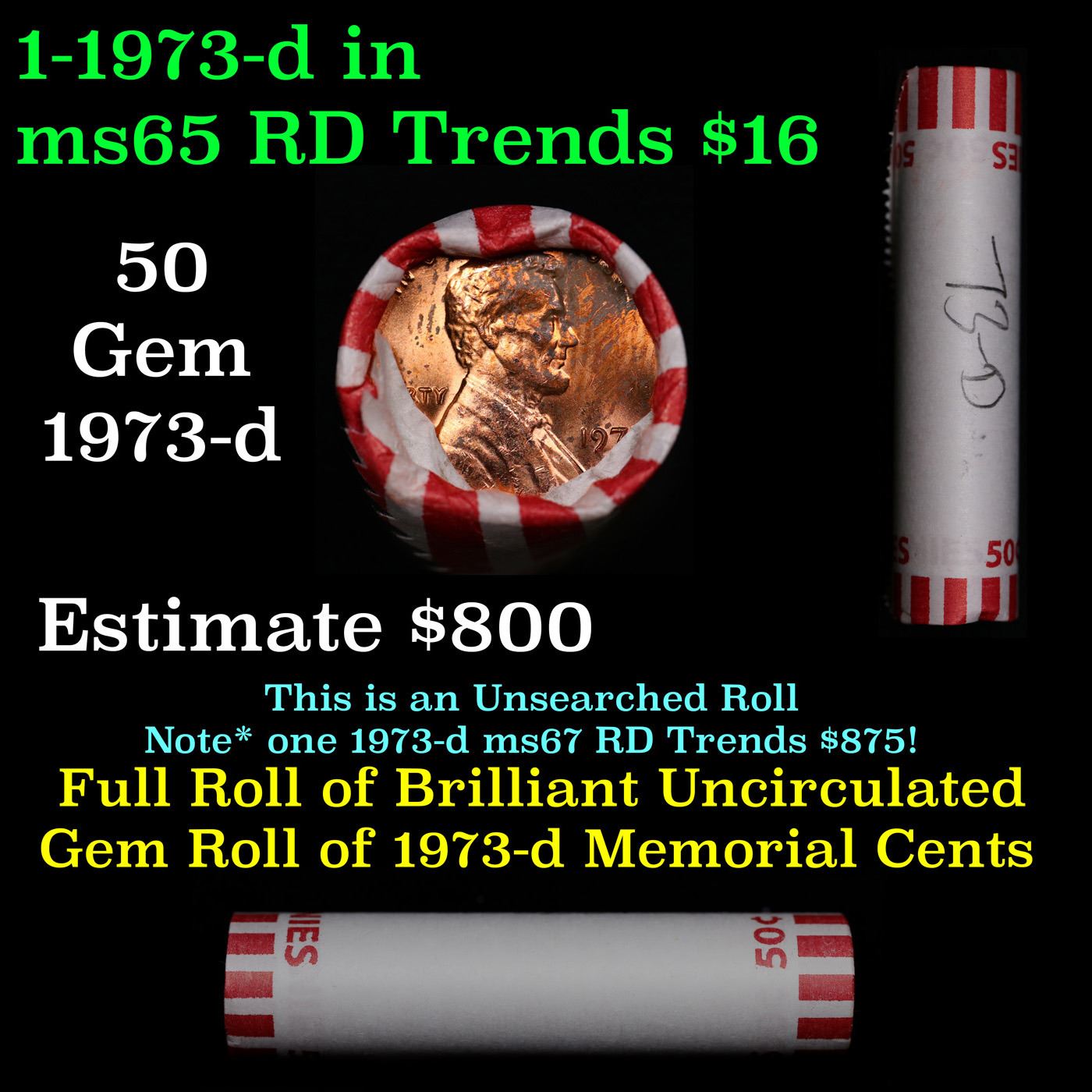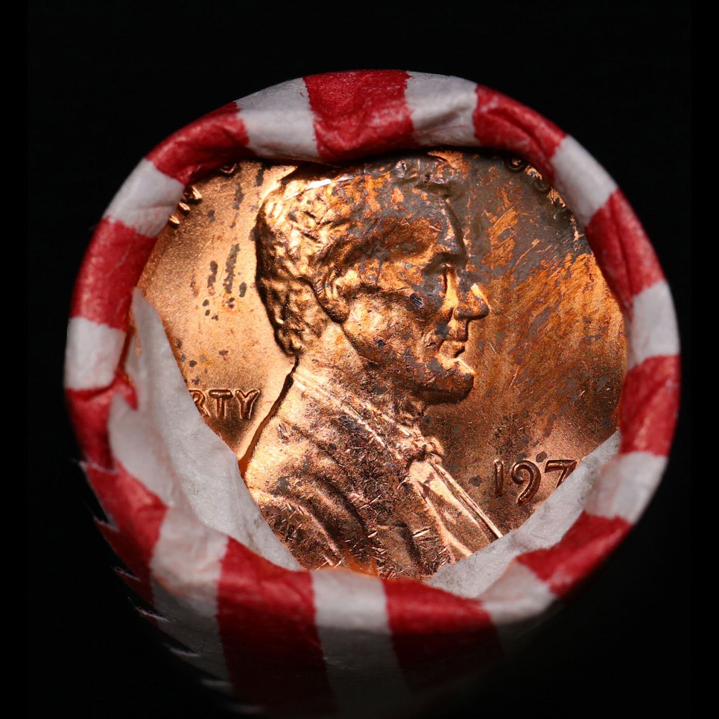 Shotgun Lincoln 1c roll, 1973-d 50 pcs Bank Wrapper.. A terrific Shotgun roll of Lincoln cents. Most if not all coin should be cherry red.
