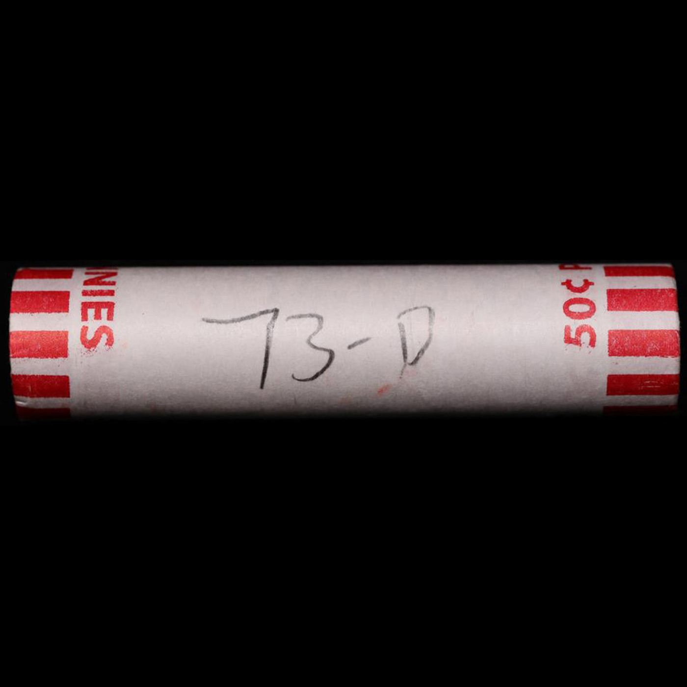 Shotgun Lincoln 1c roll, 1973-d 50 pcs Bank Wrapper.. A terrific Shotgun roll of Lincoln cents. Most if not all coin should be cherry red.