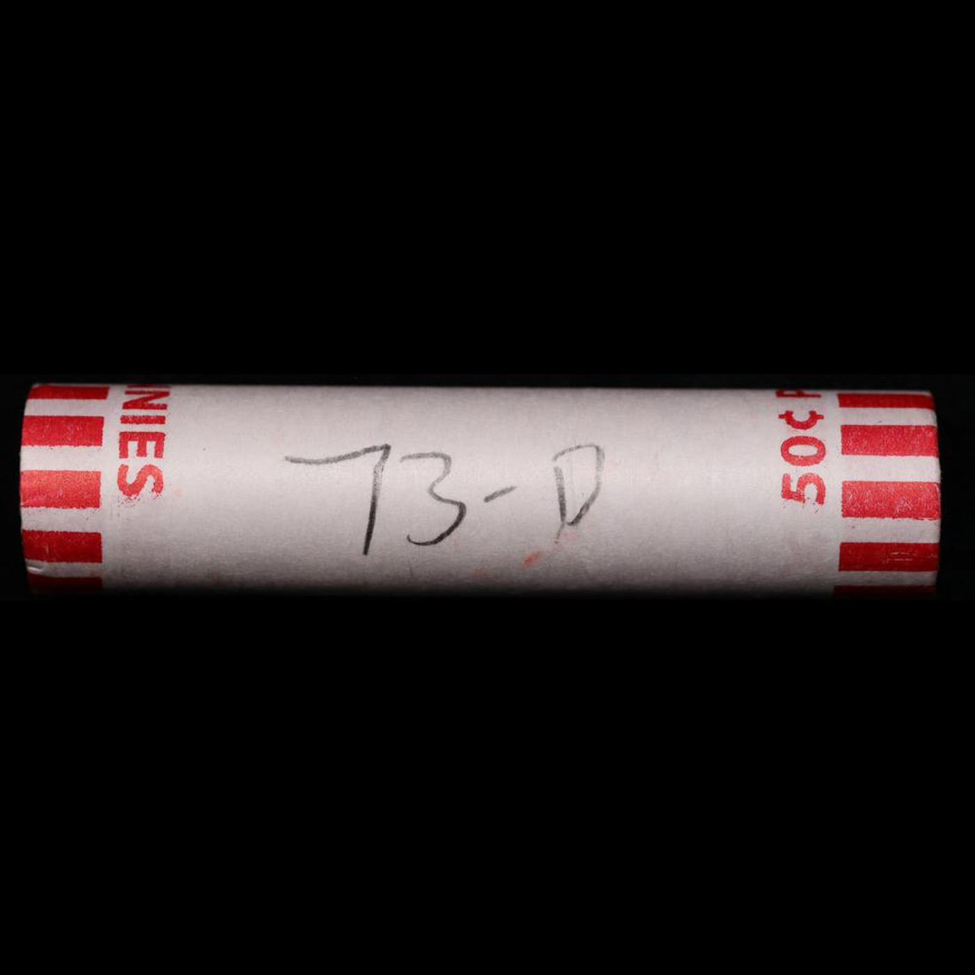 Shotgun Lincoln 1c roll, 1973-d 50 pcs Bank Wrapper.. A terrific Shotgun roll of Lincoln cents. Most if not all coin should be cherry red.