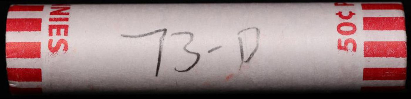 Shotgun Lincoln 1c roll, 1973-d 50 pcs Bank Wrapper.. A terrific Shotgun roll of Lincoln cents. Most if not all coin should be cherry red.